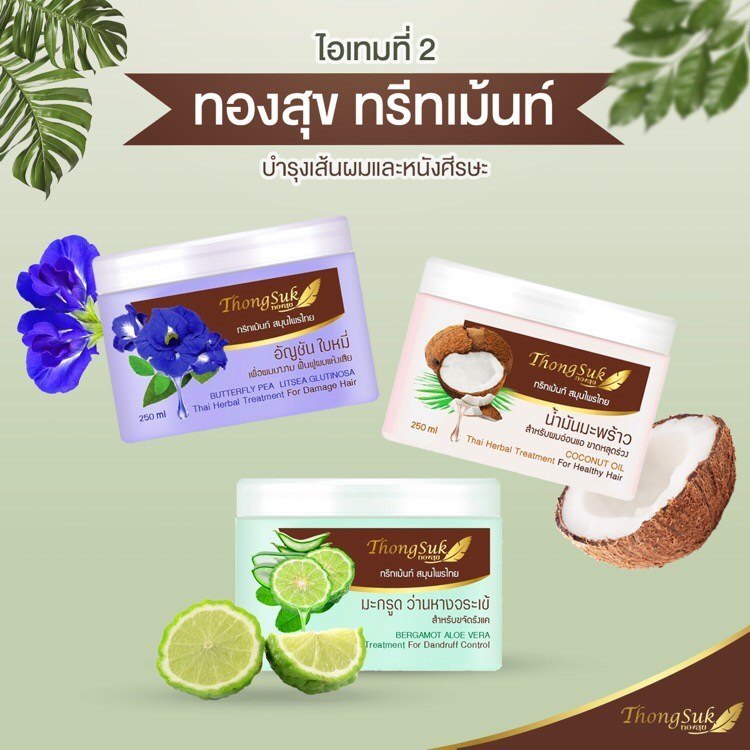 ทองสุข ทรีทเม้นท์ สมุนไพรไทย บำรุงเส้นผม 250g. Thongsuk Thai Herbal Treatment