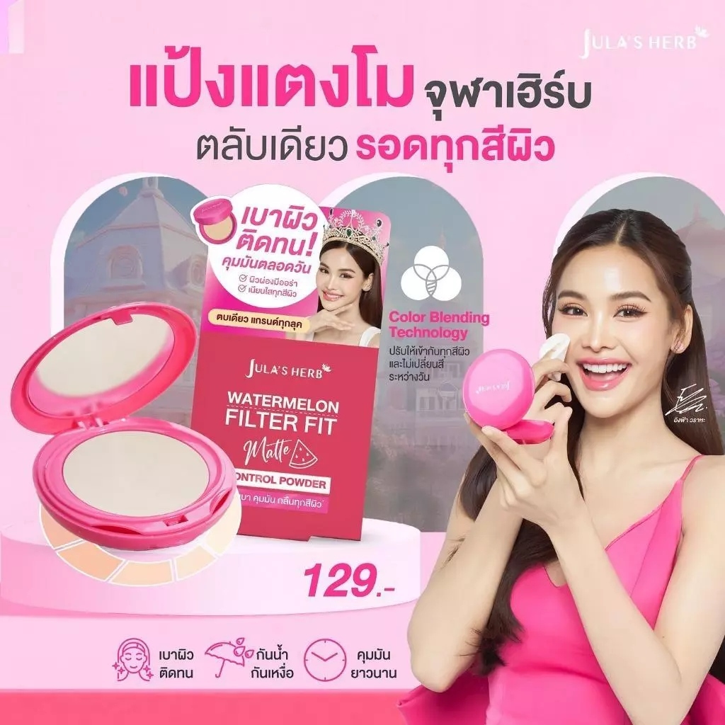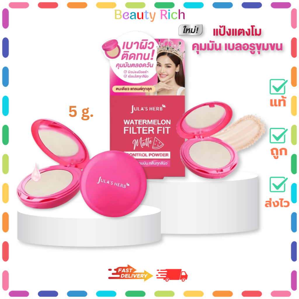 (1 ตลับ) Jula's Herb Watermelon Filter Fit Matte Control Powder แป้งแตงโมจุฬาเฮิร์บ (5 g.)