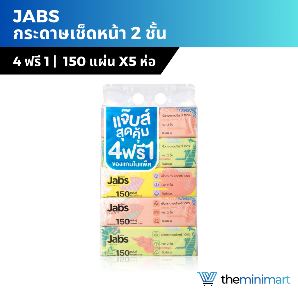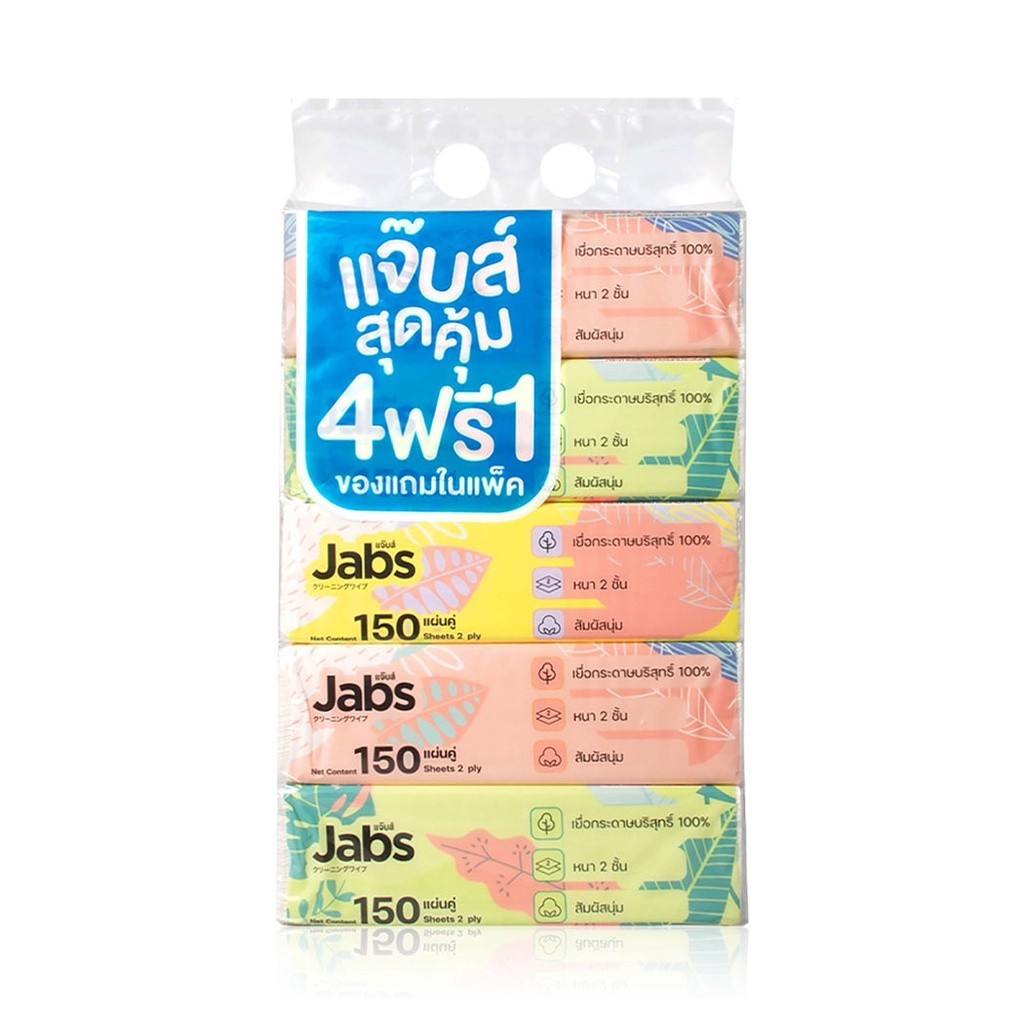 [ยกแพ็ก] Jabs แจ๊บส์ ทิชชู่ จำนวน 150 Sheets x 5pcs ซอฟท์แพ็ค 2 ชั้น
