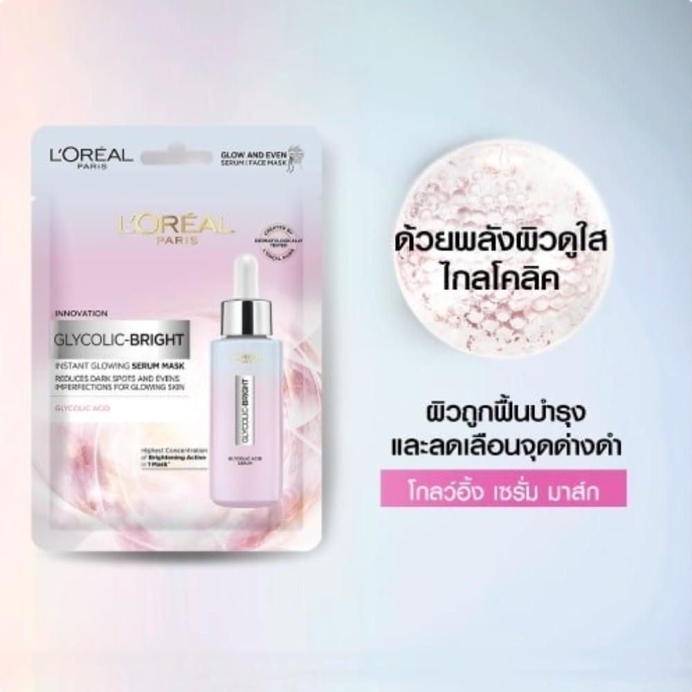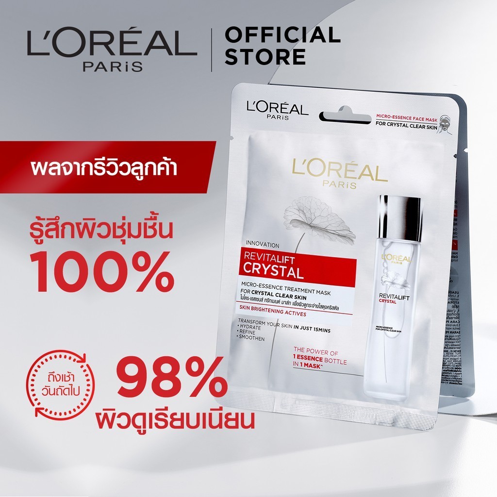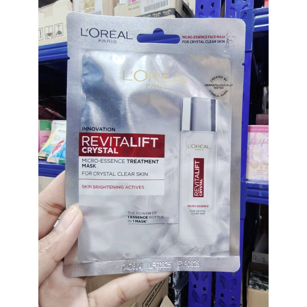 (1 แผ่น) มาส์ก MASK L'Oreal Paris Crystal mask & Bright Serum mask ลอรีอัล ปารีส ผลิตภัณฑ์มาส์กบำรุงผิวหน้า 22g.