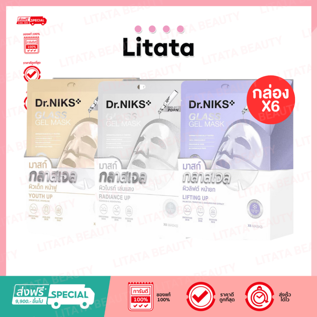 [กล่อง x6] Dr.Niks Glass Gel Mask กลาสเจลมาสก์ 30g ดร.นิกส์