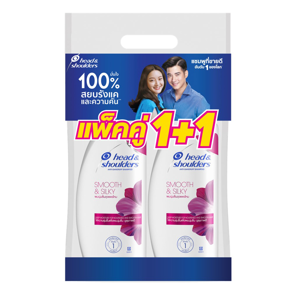 เฮดแอนด์โชว์เดอร์ แชมพู สมูท แอนด์ ซิลกี้ ขวดปั๊ม ขนาด 370 มล. (แพ็คคู่ 1+1) HEAD & SHOULDERS SHAMPOO SMOOTH AND SILKY