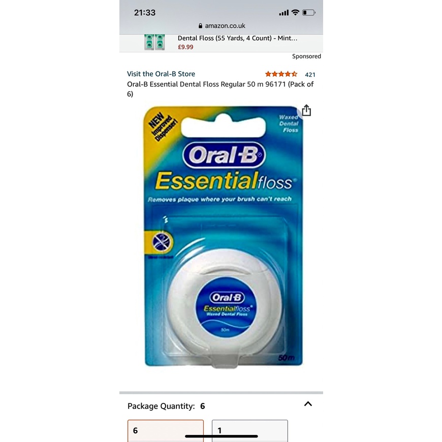 Oral B มีมินท์ และไม่มีมินท์ ออรัลบี ไ หมขัดฟัน เคลือบแว๊กซ์ 50 m