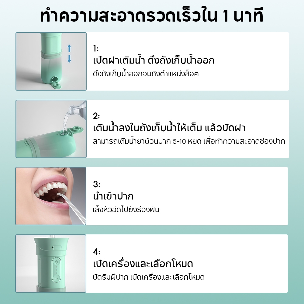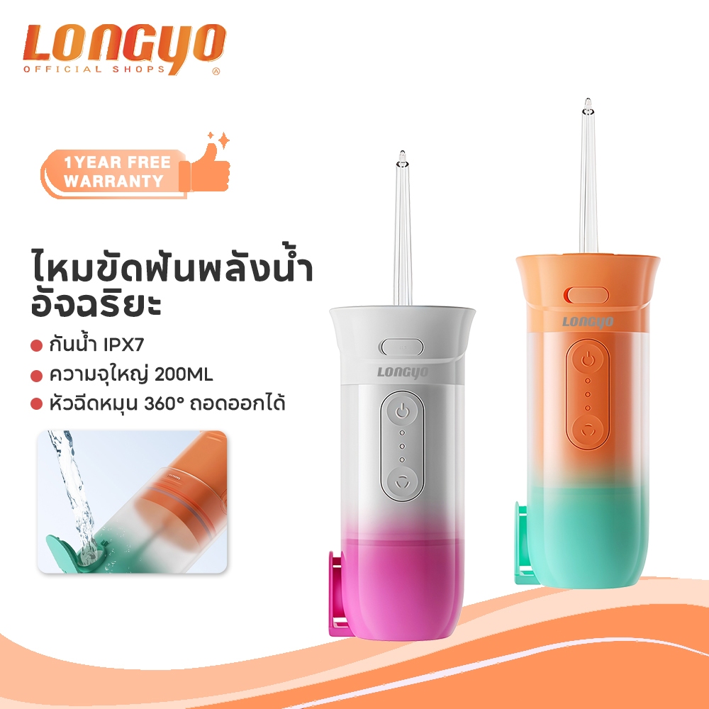 Longyo ไหมขัดฟันพลังน้ำ แบบพกพา Water Flosser เครื่องล้างฟัน ถังน้ำความจุสูง 200 มล ระดับการกันน้ำ IPX7 เครื่องขัดฟัน
