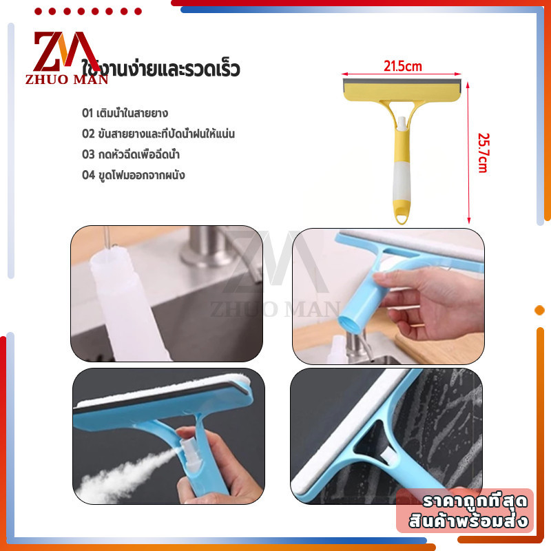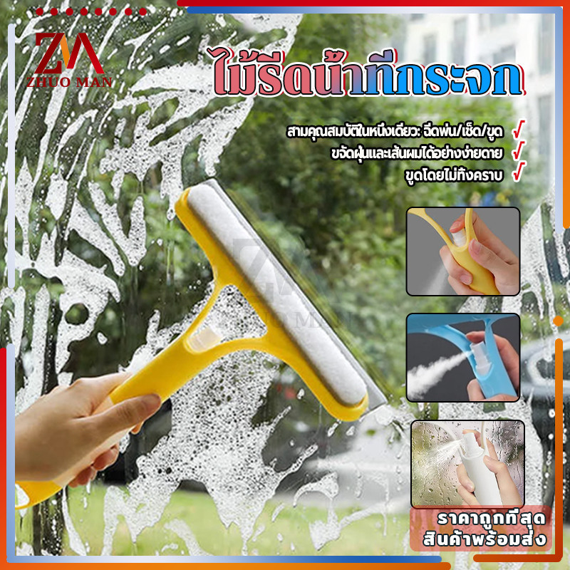 ไม้รีดน้ำที่กระจก ที่เช็ดกระจก 3 in 1 ไม้เช็ดกระจก ที่รีดน้ำกระจกอเนกประสงค์ หัวฉีดในตัว ทำความสะอาดได้เร็ว ไม่ทิ้งคราบ