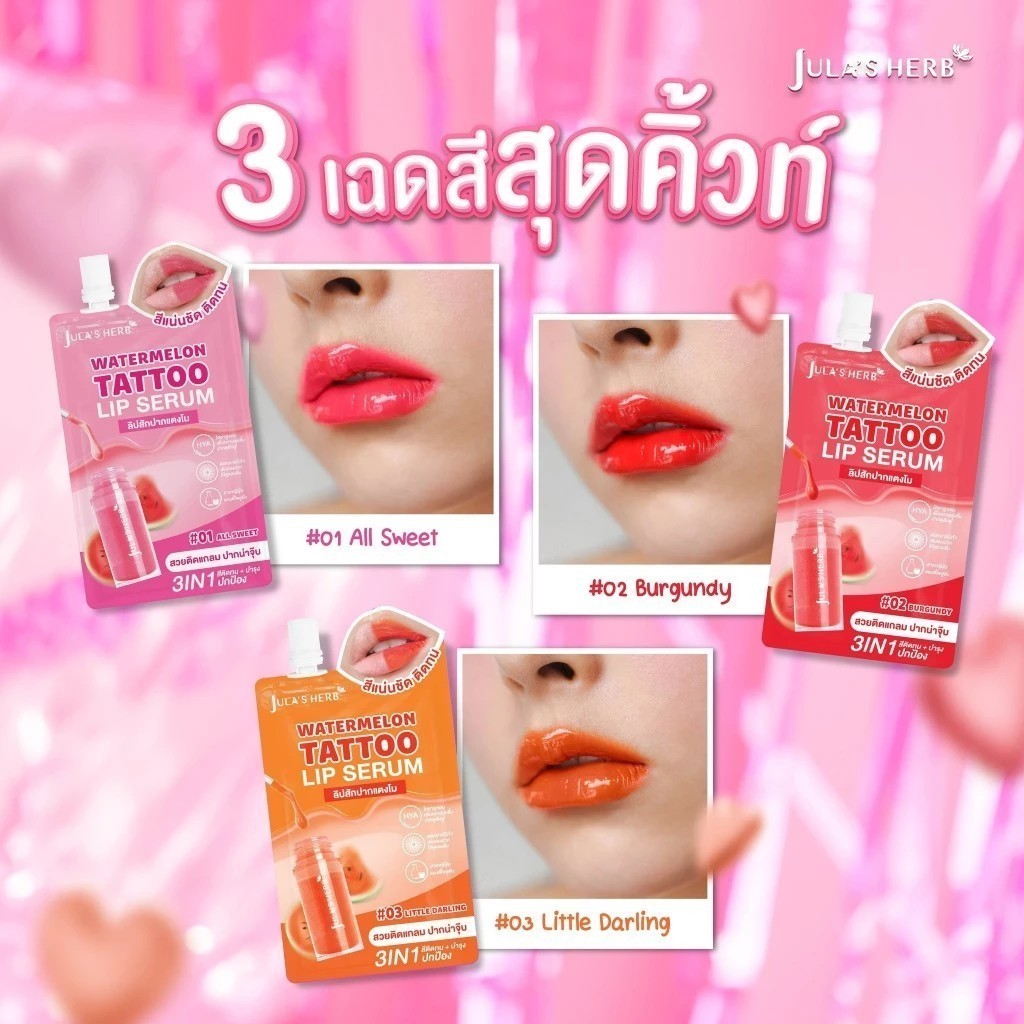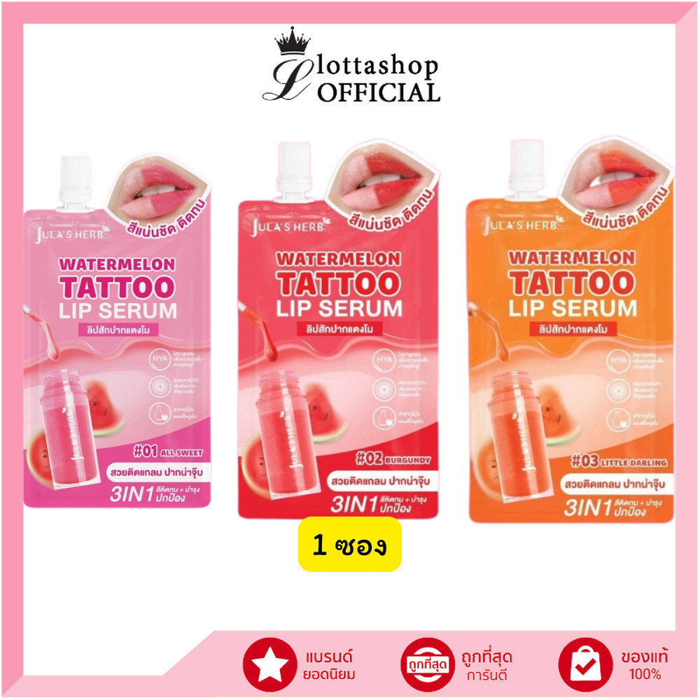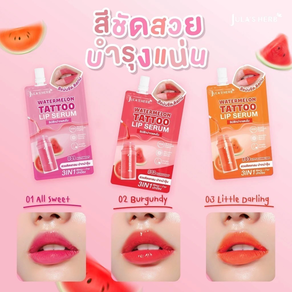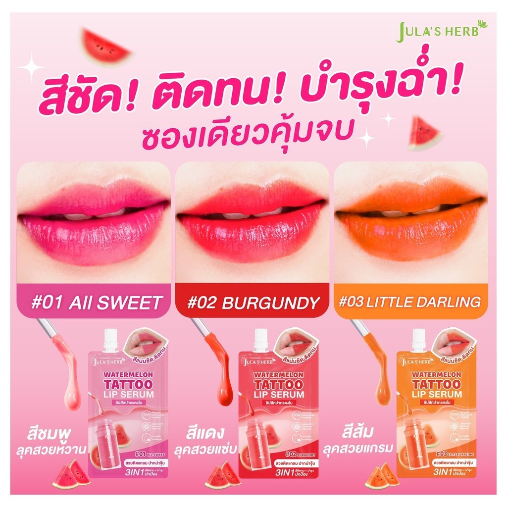 🔥แท้/ดีลสุดคุ้ม/ไลฟ์ทุกวัน🔥(1ซอง) Jula's Herb Watermelon Tattoo Lip Serum วอเตอร์เมลอน แทททู ลิป เซรั่ม (M)