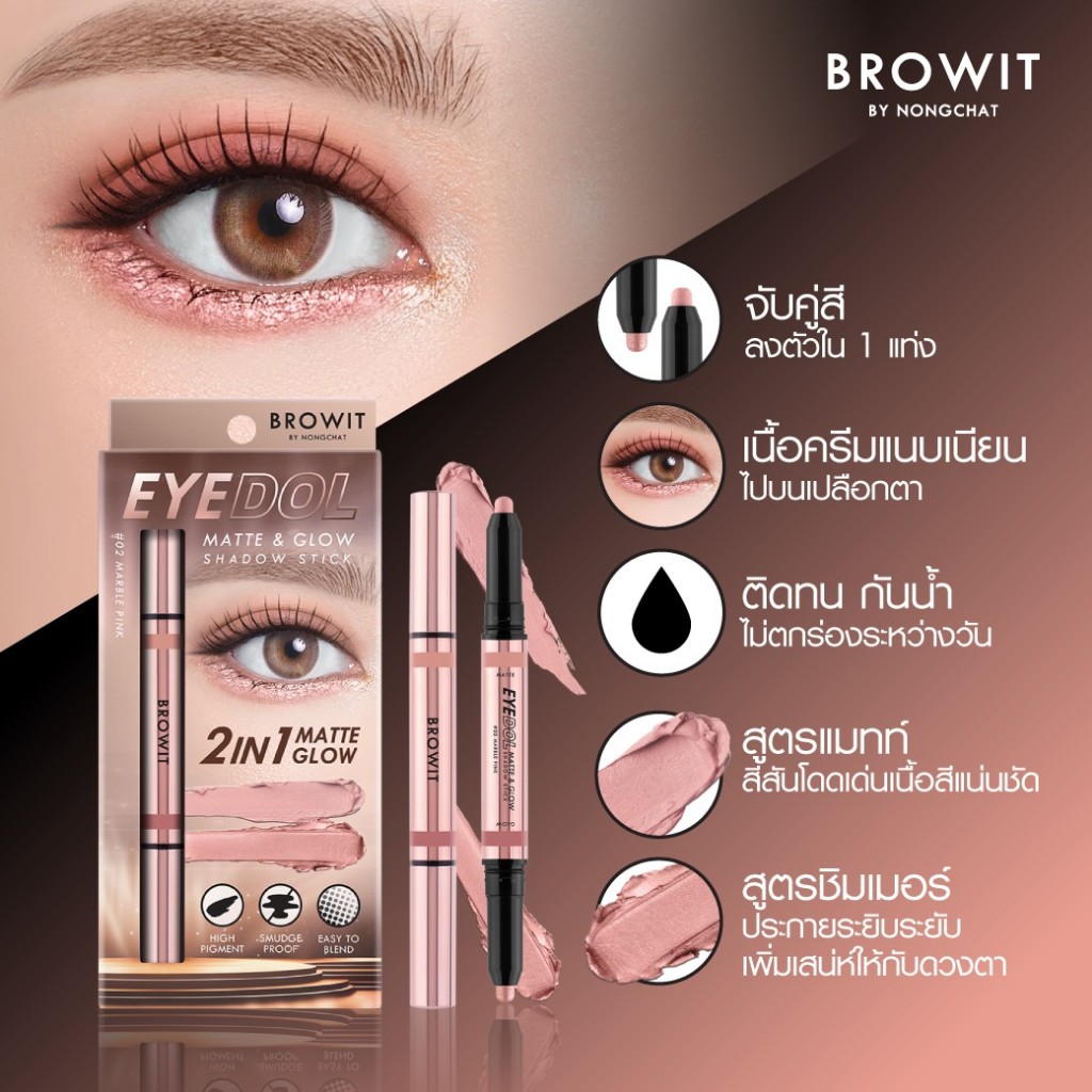 Browit Eyedol Matte & Glow Shadow Stick // บราวอิท อายดอล 2in1 ดอลลี่อาย 0.5g+0.5g