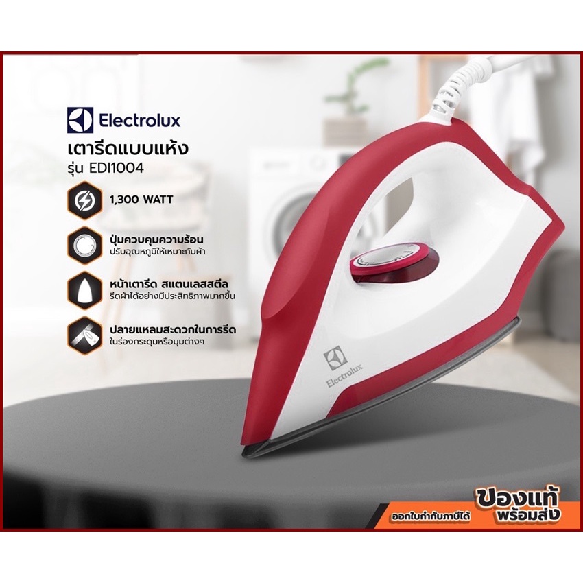 Electrolux เตารีดแห้ง รุ่น EDI1004 กำลังไฟฟ้า : 1300 วัตต์ (มอก.3662547)