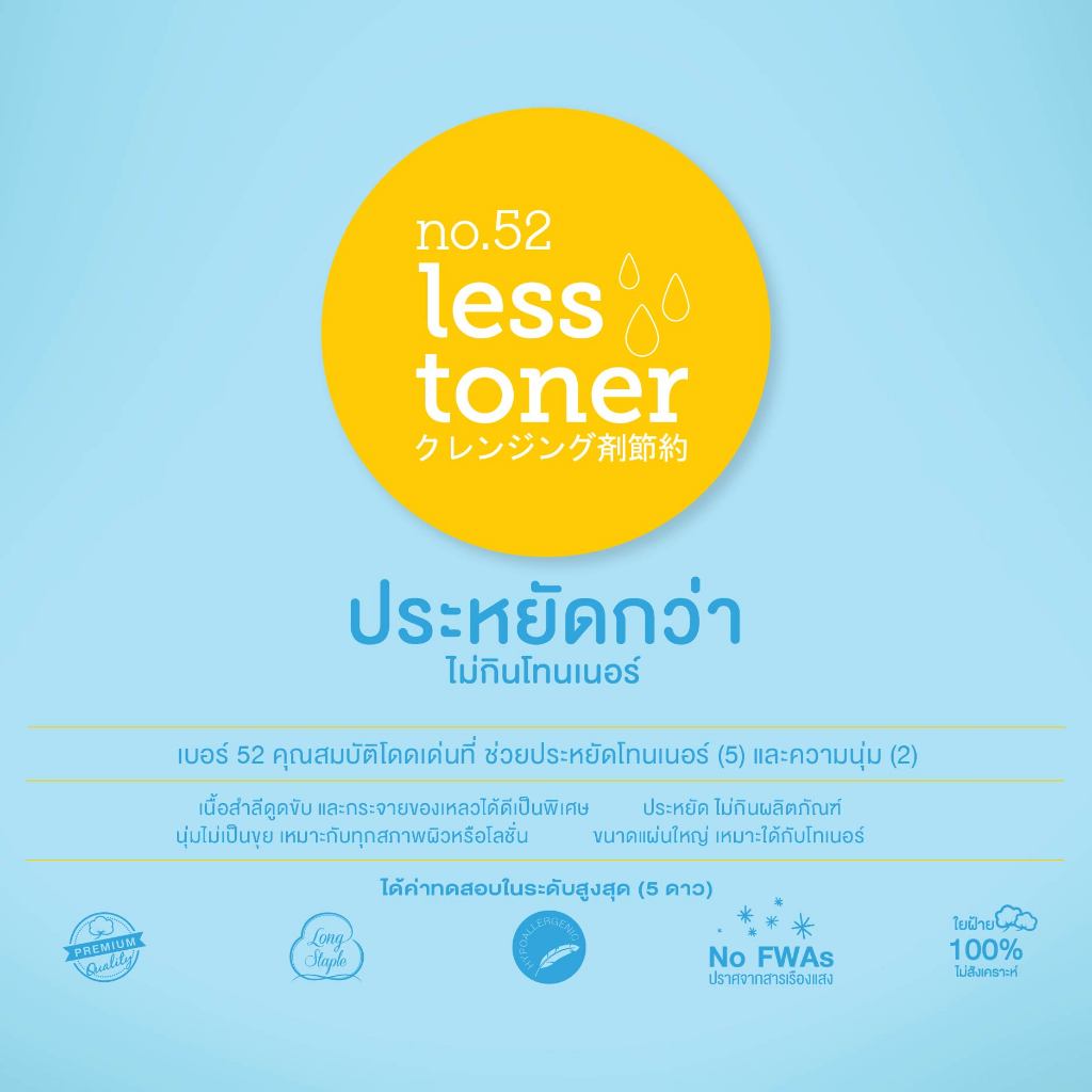 Rii 52 Less Toner Cotton Pad Refill Pack 240pcs/Bag ริอิ สําลี
