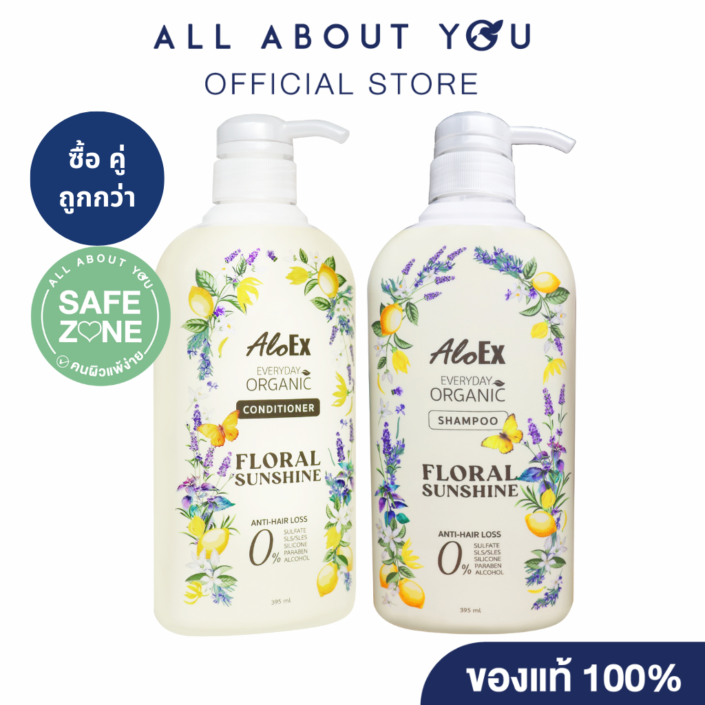 [ซื้อคุ่! สุดคุ้ม]AloEx Everyday Organic Shampoo Floral Sunshine + Everyday Organic Conditioner Floral Sunshine 395 ml