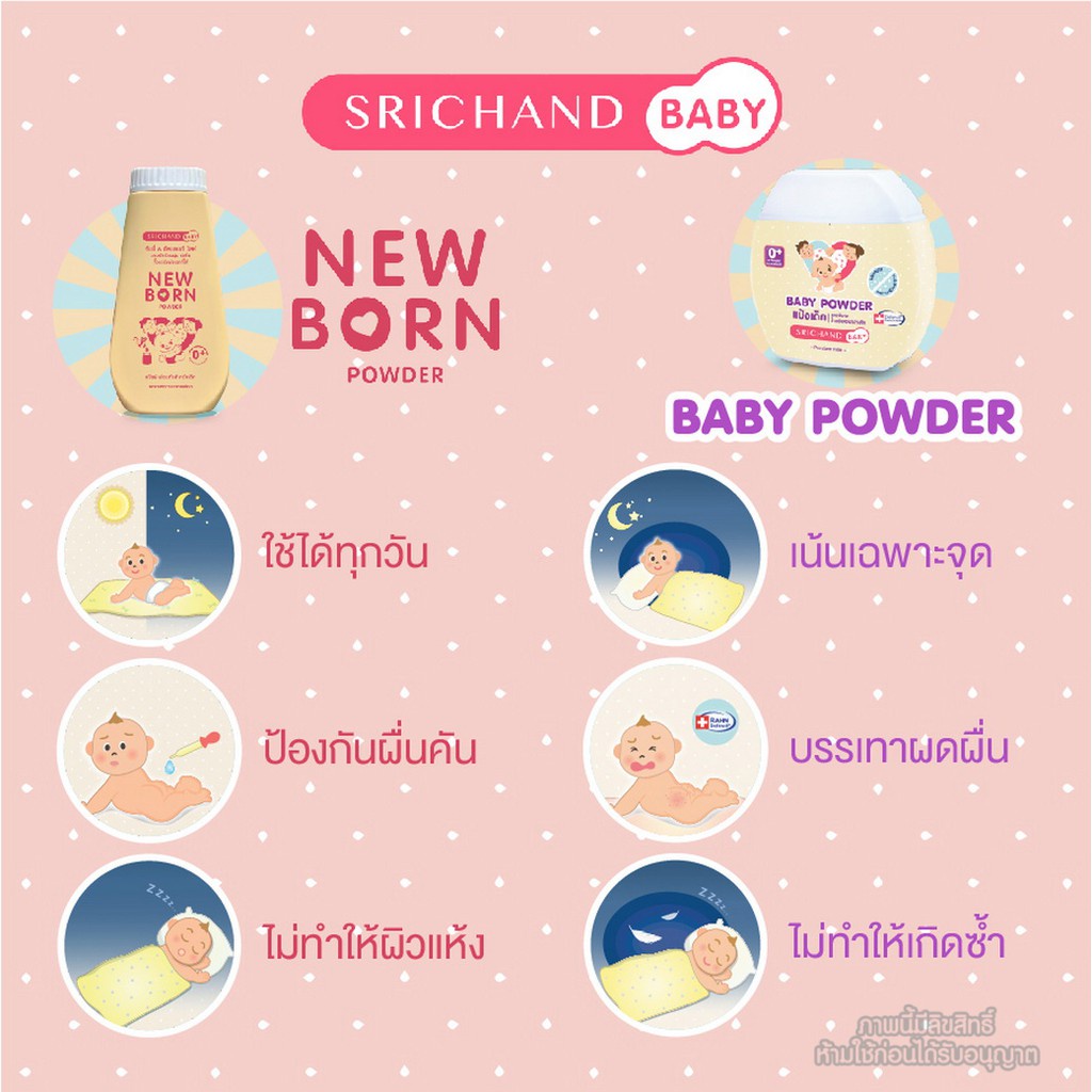 Srichand ศรีจันทร์ เบบี้นิวบอร์น พาวเดอร์ 150 กรัม แป้งฝุ่น สำหรับเด็ก แป้งเด็ก