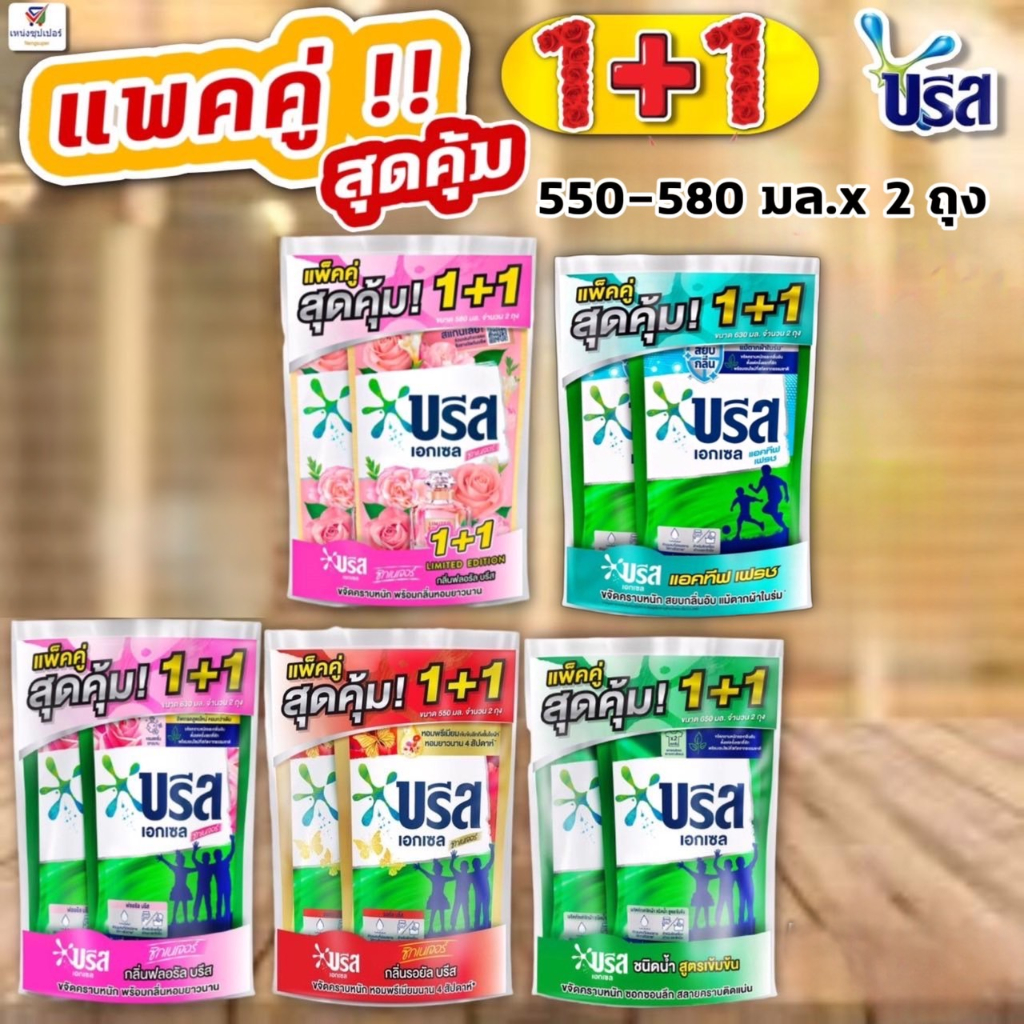 exclusive (แพคคู่1+1) น้ำยาซักผ้าบรีสเอกเซล 550-580 มล. (แถมฟรี!!) ปรับผ้านุ่มคอมฟอร์ท บิวตี้ เพอร์ฟูม 17 มล. 2ซอง