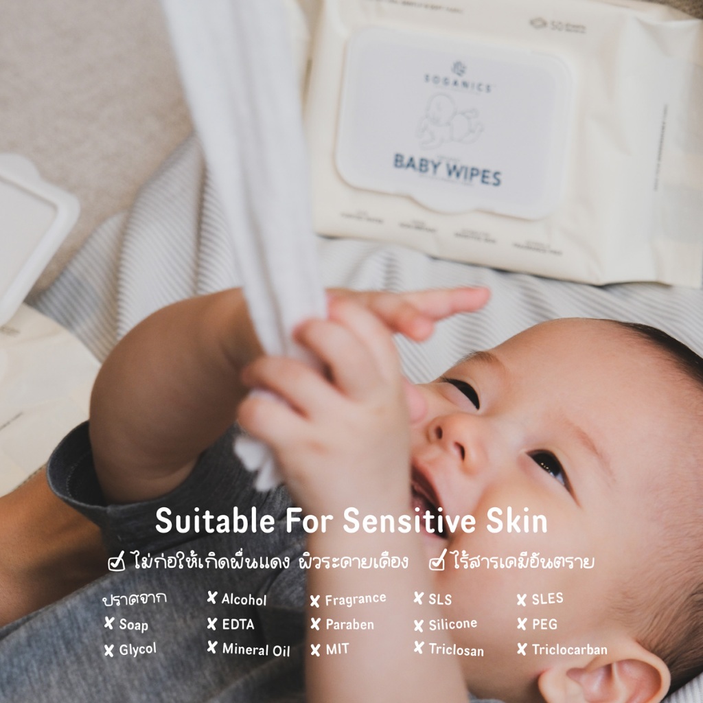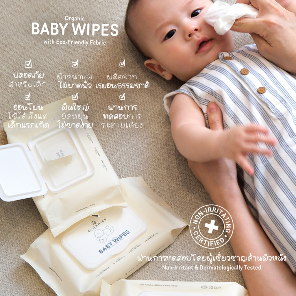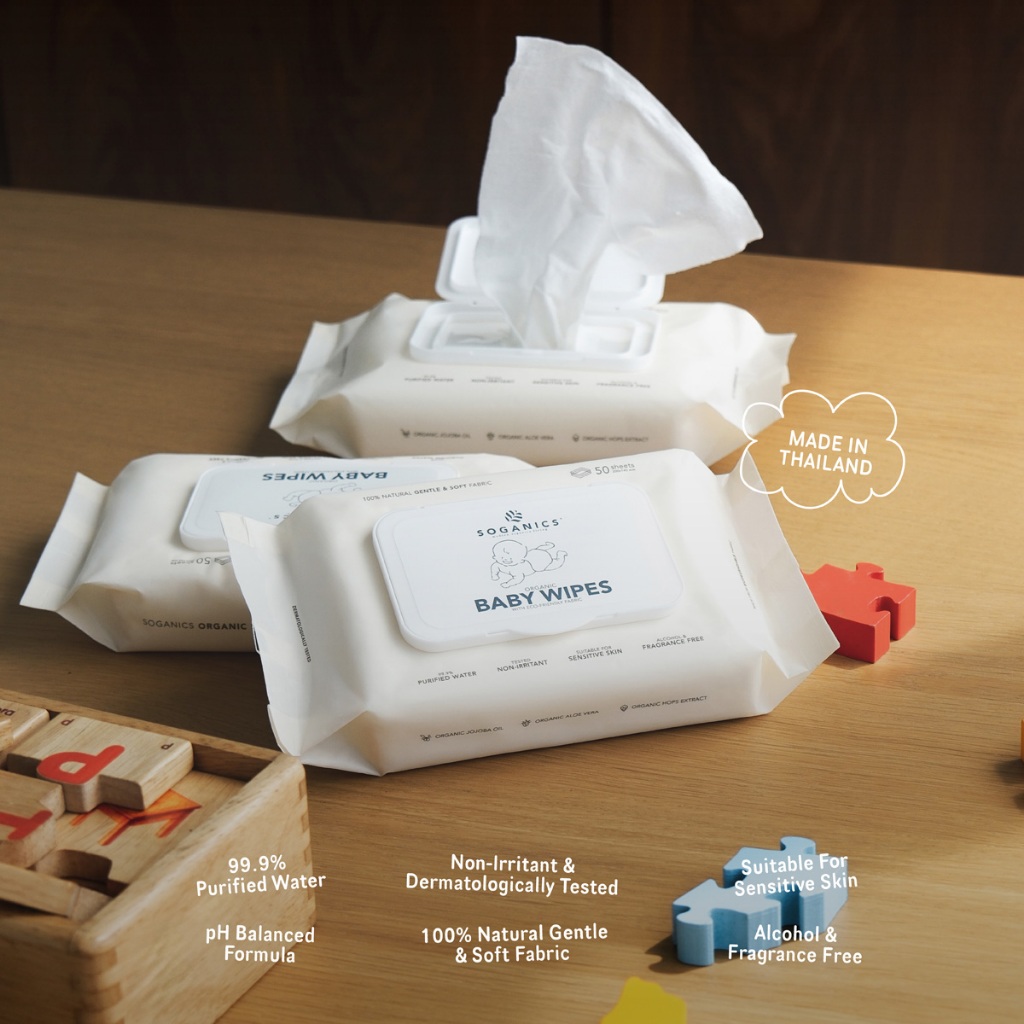 [3 แพ็ค] SOGANICS Organic Baby Wipes (50 Sheets) คุ้มสุด ทิชชู่เปียก ผ้านุ่มละมุนจากใยธรรมชาติ 100%