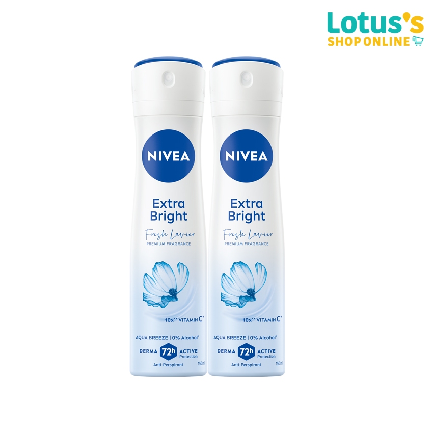 [ทั้งหมด 2 ชิ้น] นีเวีย สเปรย์ เอ็กซ์ตร้า ไบรท์ เฟรช ลาเวียร์ พรีเมียม ฟราแกรนซ์ อควา บรีซ 150 มล.NIVEA SPRAY EXTRA