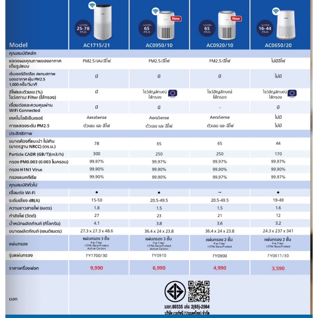 PHILIPS เครื่องฟอกอากาศ รุ่น AC0650/10 (สำหรับขนาดห้อง 44 ตร.ม.)