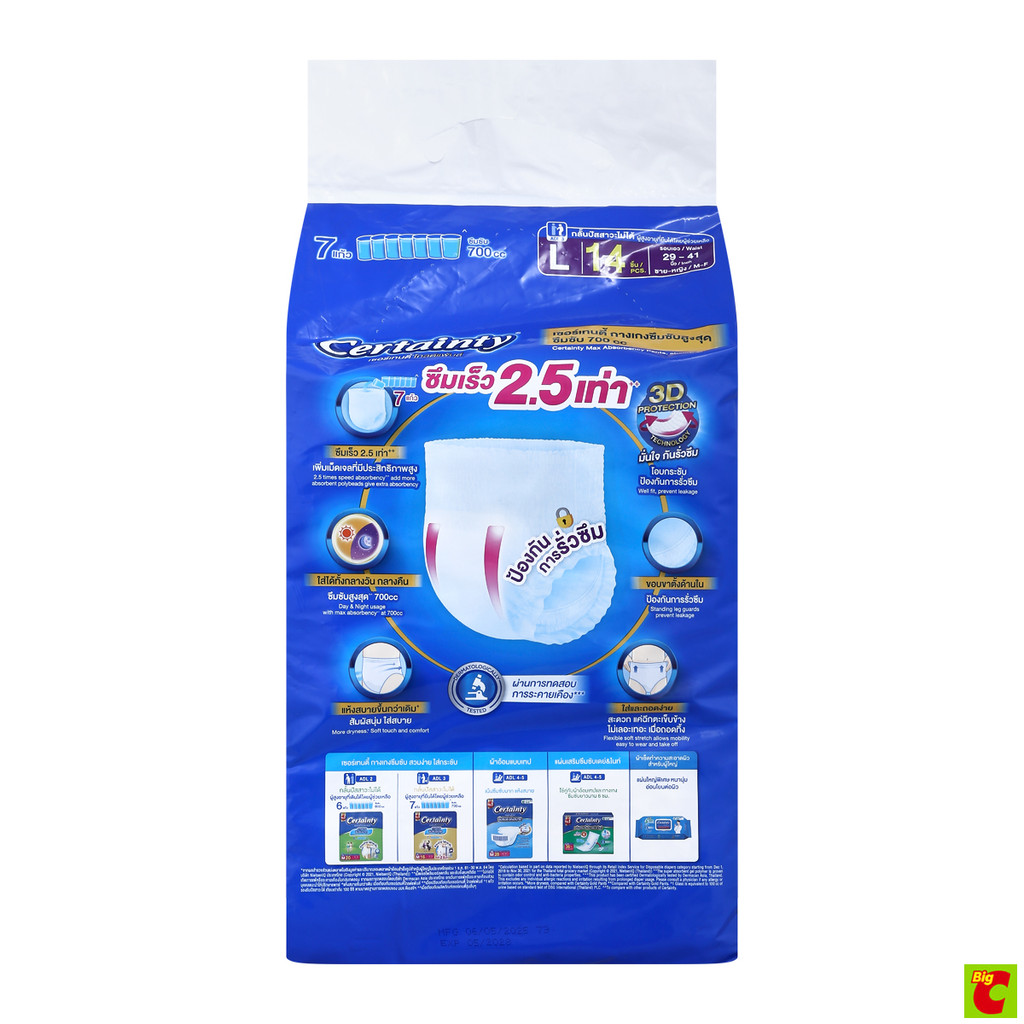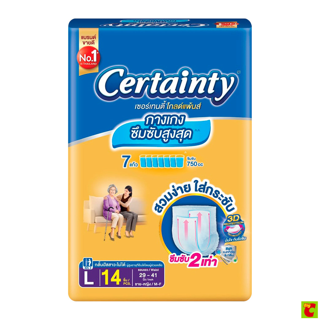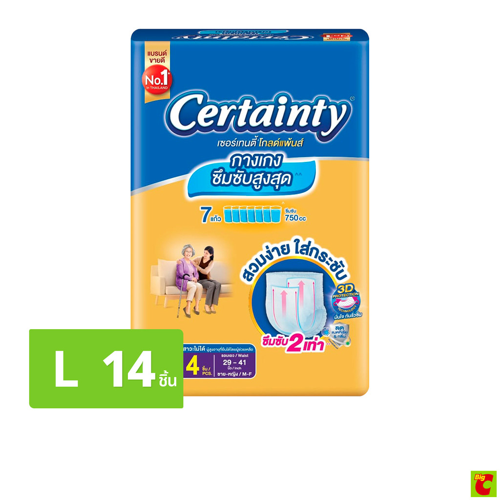 เซอร์เทนตี้ กางเกงโกลด์แพ้นส์ ผ้าอ้อมผู้ใหญ่ ขนาด L แพ็ค 14 ชิ้น