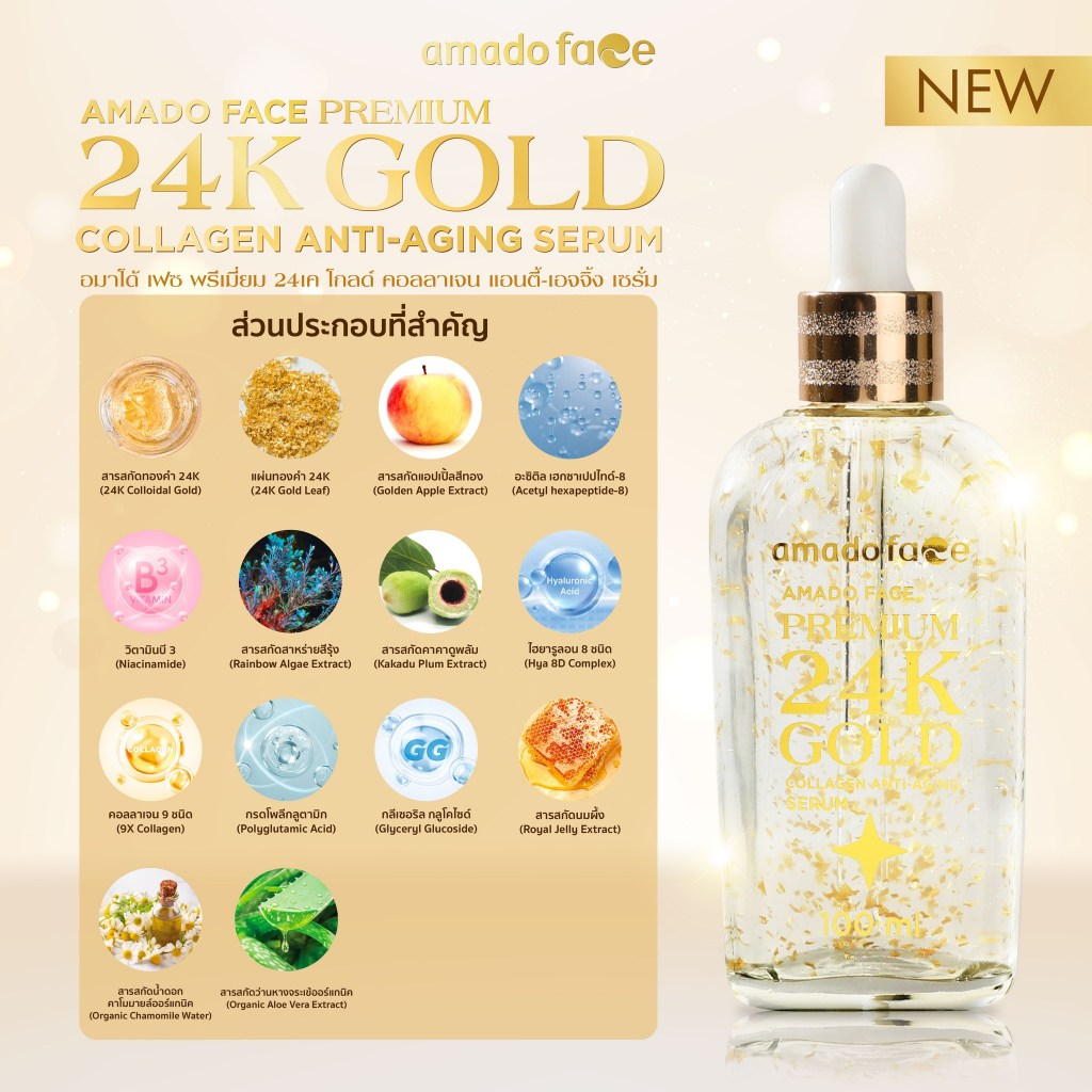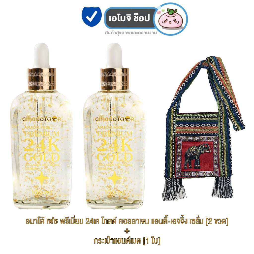[Set 2 ชิ้น + กระเป๋าย่าม 1 ใบ] Amado Premium 24K Gold Collagen [100 ml.] [2 ขวด] + กระเป๋าย่ามแฮนด์เมด [1 ใบ] [คละลาย]