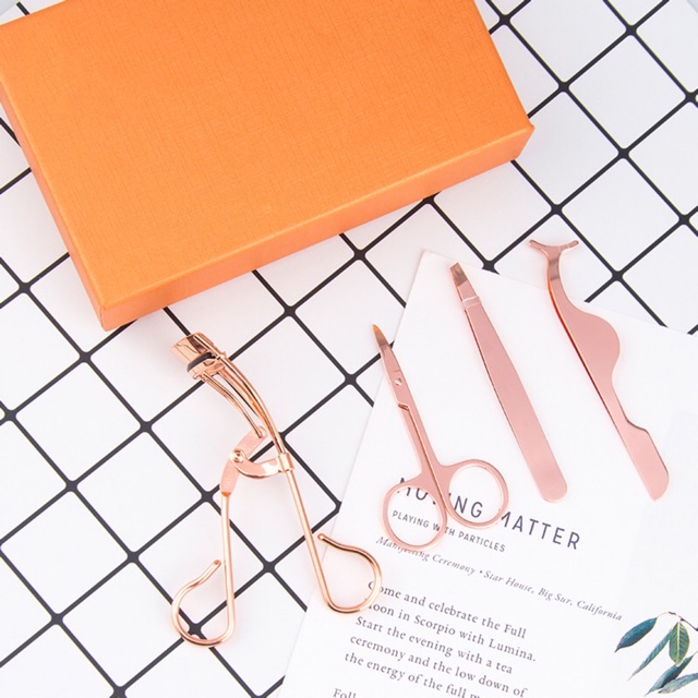 Set ตกแต่งขนตา ปลอม Box Set 4ชิ้น หรูหรา สีโรสโกลด์