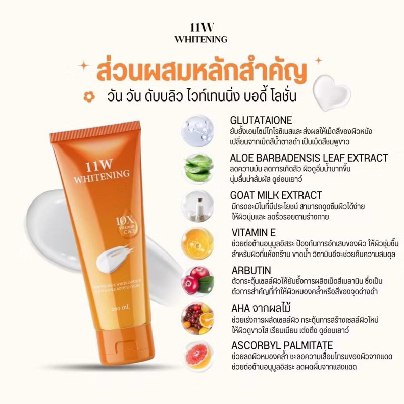[พร้อมส่ง] โลชั่น ผิวขาว 11w Whitening body lotion บำรุง กระจ่างใส ขาวเร็ว ขาวไว ดำ ผิวคล้ำ ผิวกาย 11 w