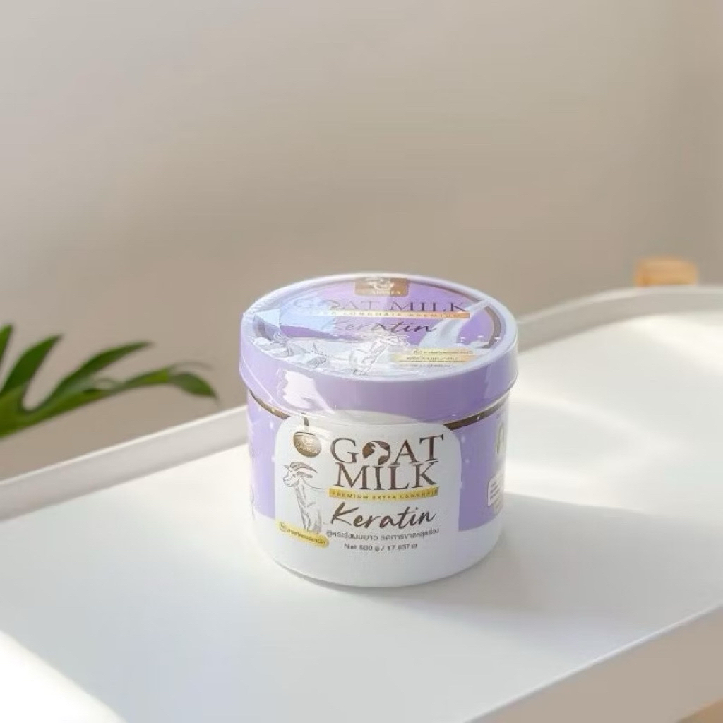 ( 10 กระปุก)Goat Milk Extra Longhair Premium Keratin เคราตินนมแพะ สูตรสี ม่วง ทรีทเม้น บำรุงผม 500g.