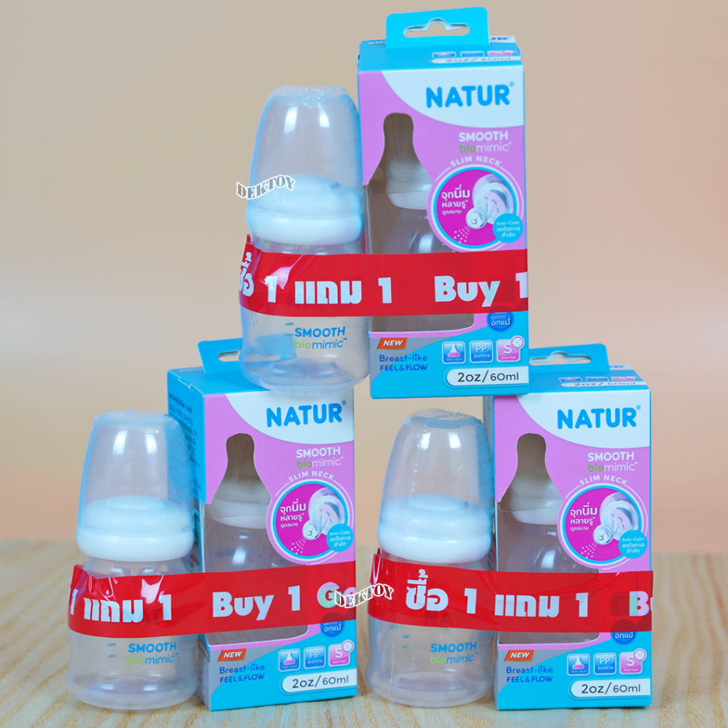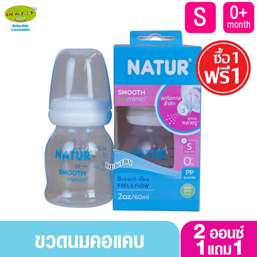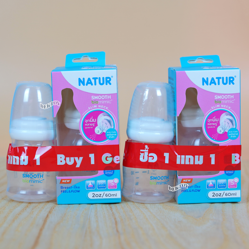 1 ฟรี 1 NATUR เนเจอร์ ขวดนมเนเจอร์ สมูทไบโอมิมิค 2 ออนซ์