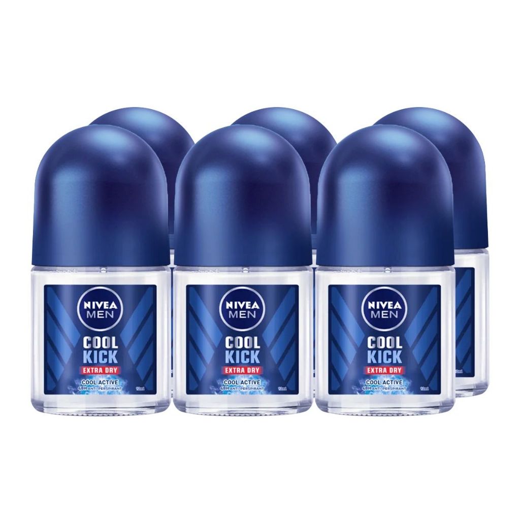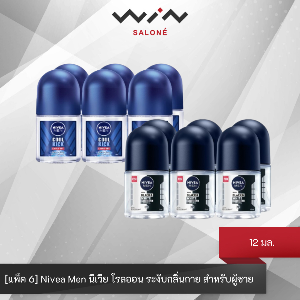 [แพ็ค 6] Nivea Men นีเวีย เมน คูล คิก / แบล็คแอนด์ไวท์ อินวิซิเบิ้ล 12 มล. โรลออน ระงับกลิ่นกาย สำหรับผู้ชาย