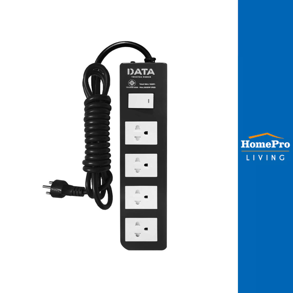 DATA รางปลั๊กไฟ 4ช่อง 1สวิตช์ APDW424 16 แอมป์ 3 ม. สีดำ จัดส่งโดย HomePro