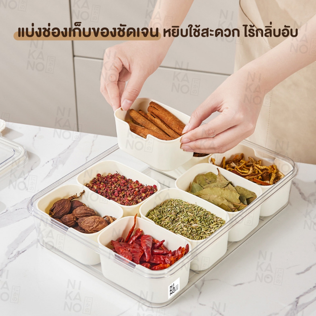 [SALE]NIKANO Condiment Box กล่องแบ่งเครื่องเทศ เก็บอาหาร กล่อง หูหิ้ว แบ่งช่อง ใส่เครื่องปรุง ใส่ท็อปปิ้ง 1ชิ้น