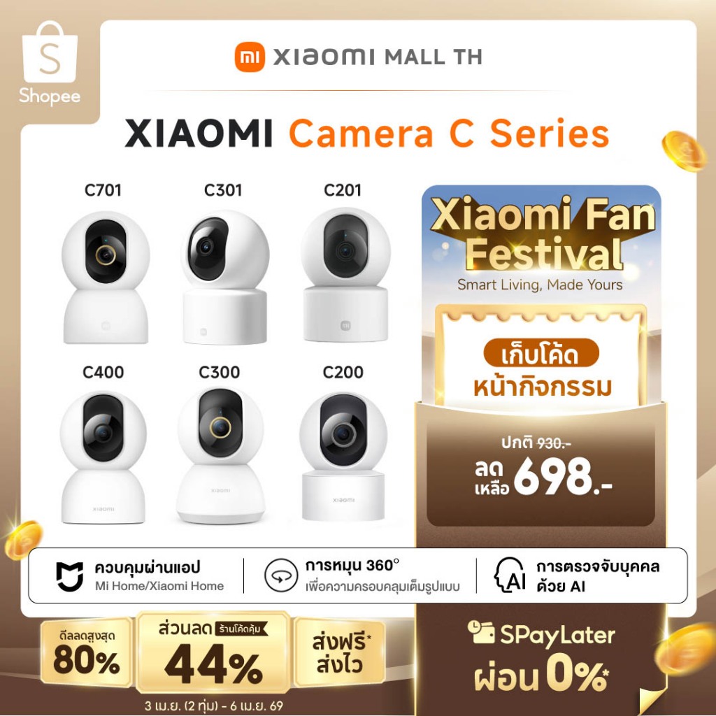 Xiaomi Mi Smart Camera C201/C302/C301/C400/C500/C701 Home Security Camera กล้องวงจรปิดไร้สาย2K กล้องวงจรปิด พาโนรามา360°