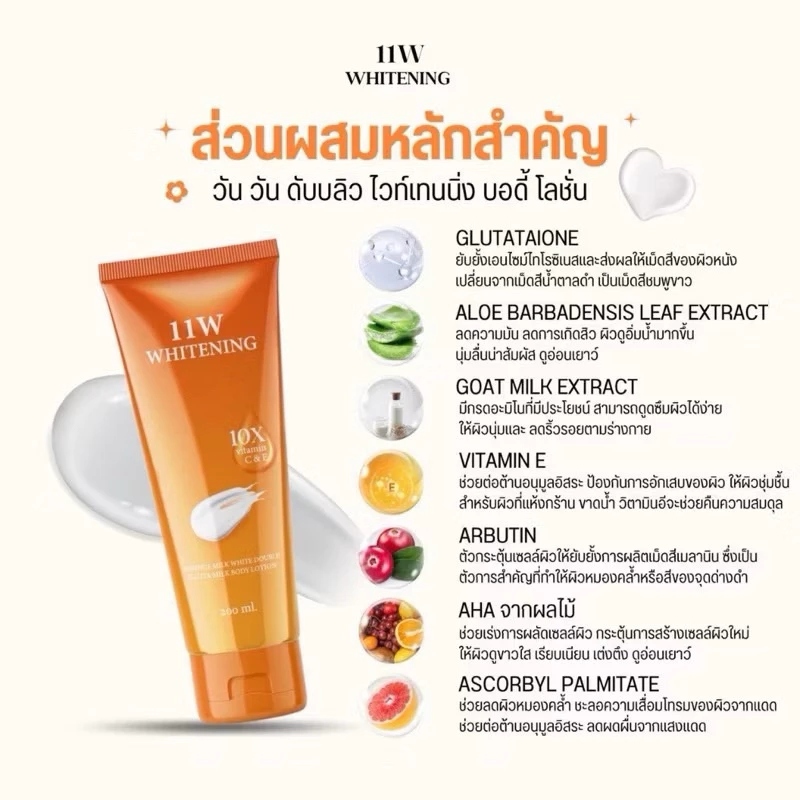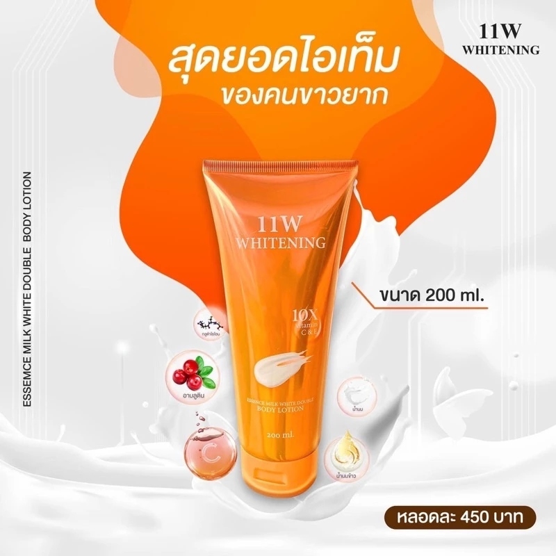 (หลอด) 11 W Whitening - โลชั่นเนื้อน้ำนมตบ โลชั่นบำรุงผิวกาย (200 ml.)