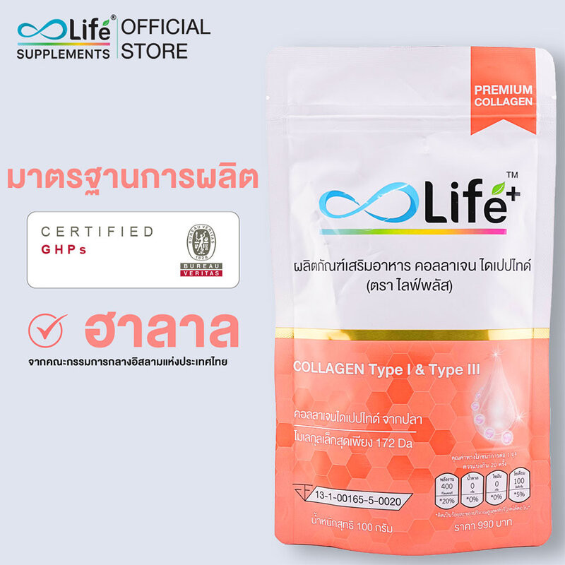 Life Plus Collagen Di-Peptide 100g คอลลาเจน ไดเปปไทด์ Collagen Di-Peptide 100 กรัม ชนิดชงดื่ม.