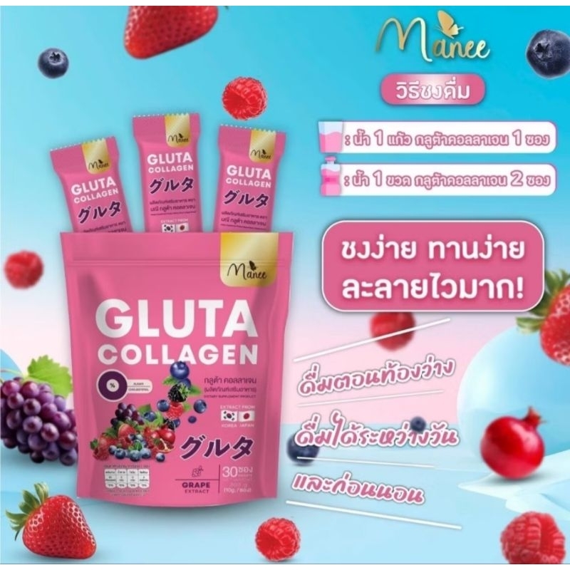 ส่งฟรี/มีไลฟ์ MANEE คลอลาเจน โปรคู่ ชมพู+ม่วง60ซอง