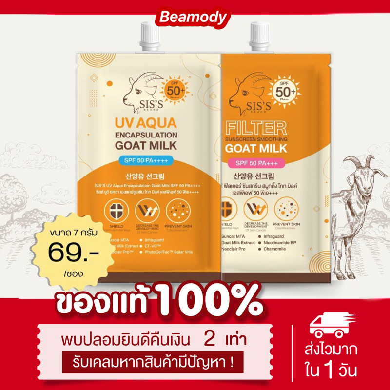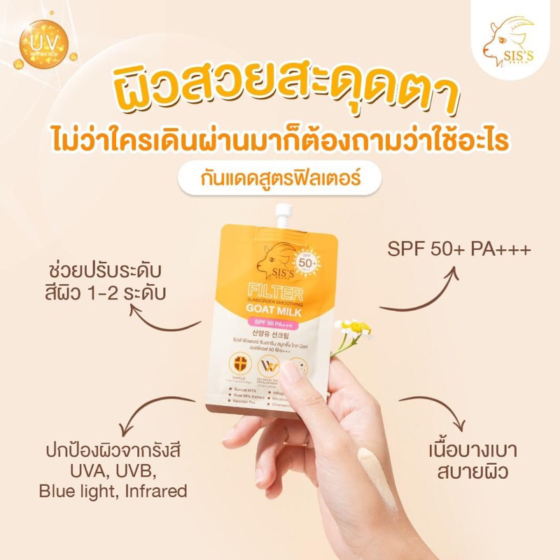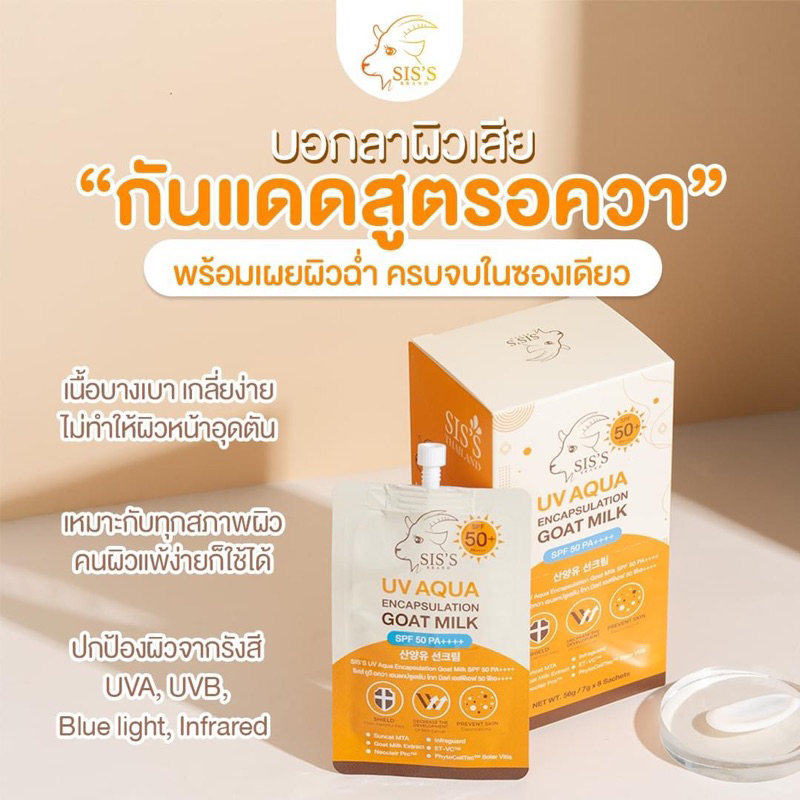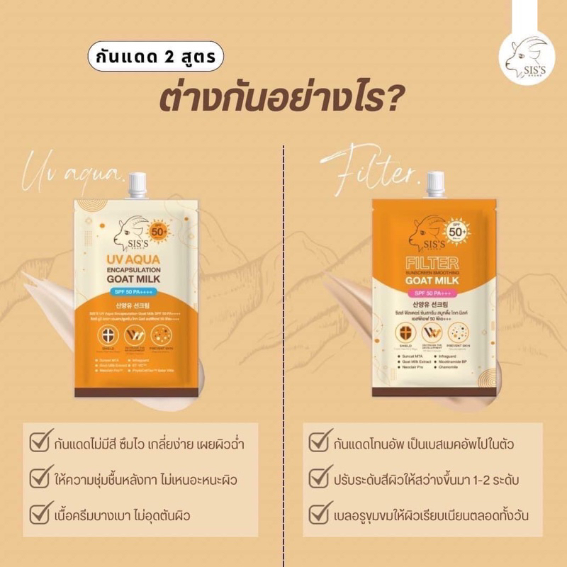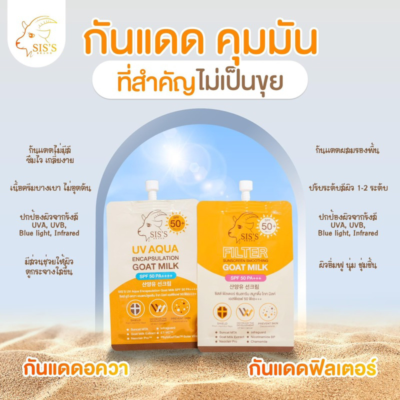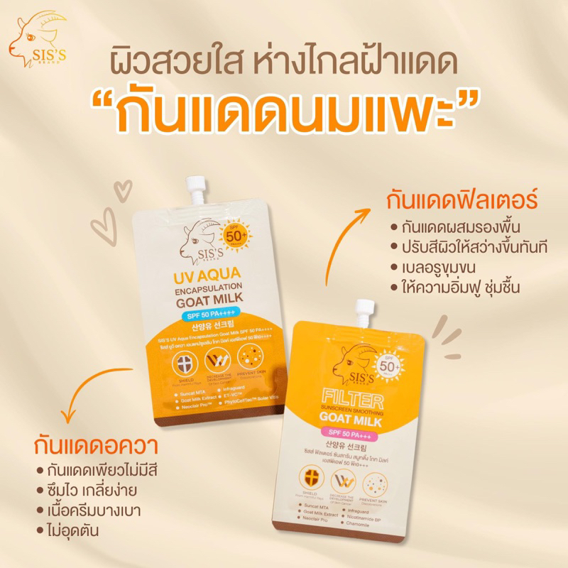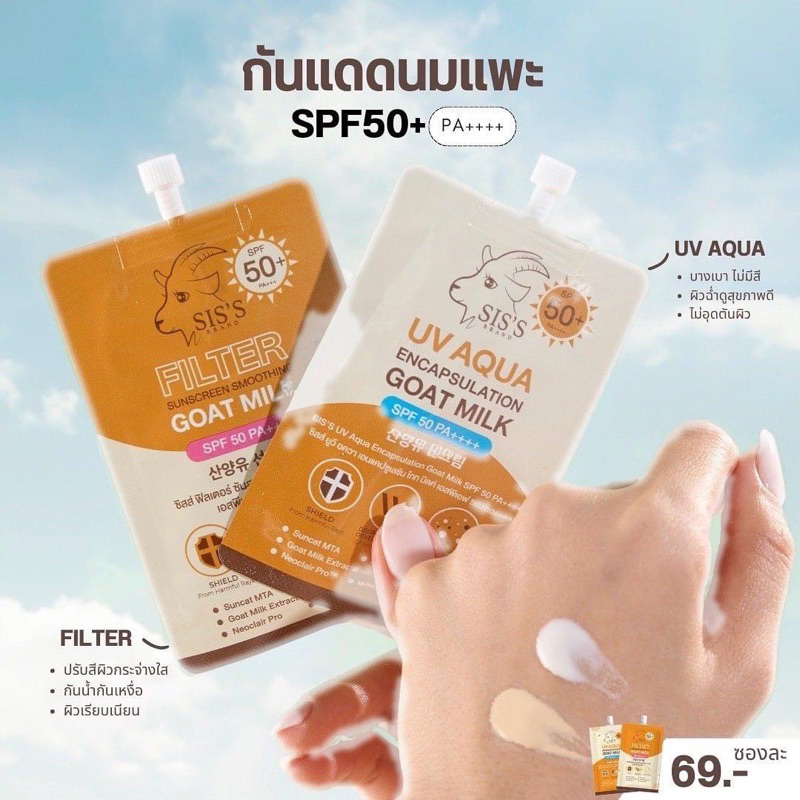 (ลด50%ในไลฟ์2ทุ่ม📍) แท้💯 กันแดดนมแพะ 2 สูตร UV Aqua & Filter SPF50+ PA++++ กันน้ำ กันเหงื่อ ไม่ดรอป กันแดดซิสส์ SIS’S