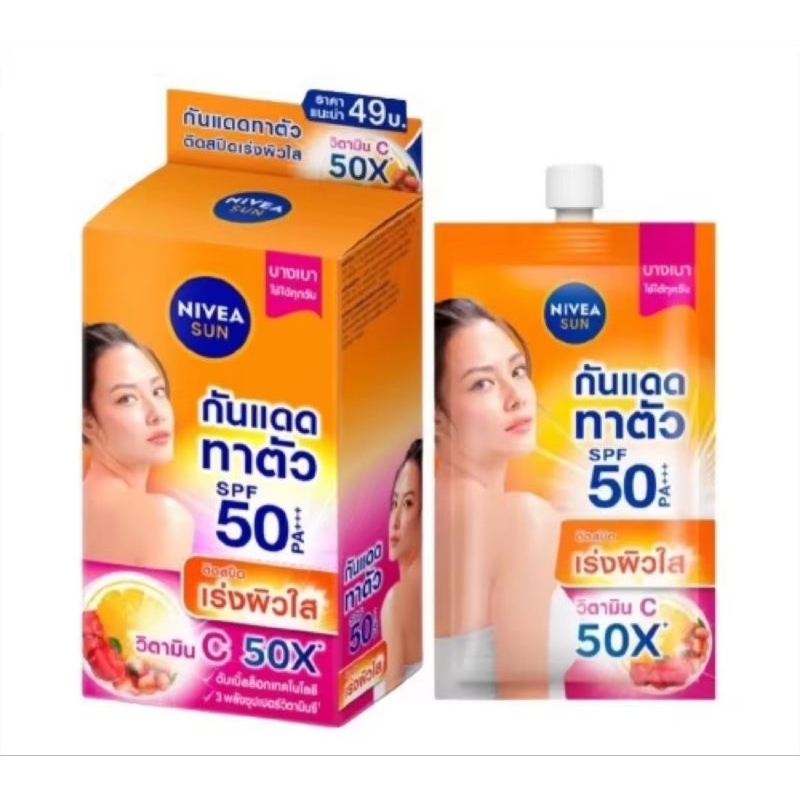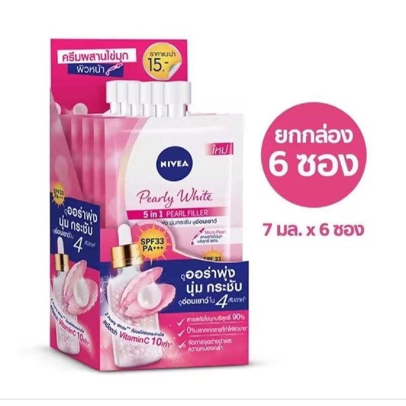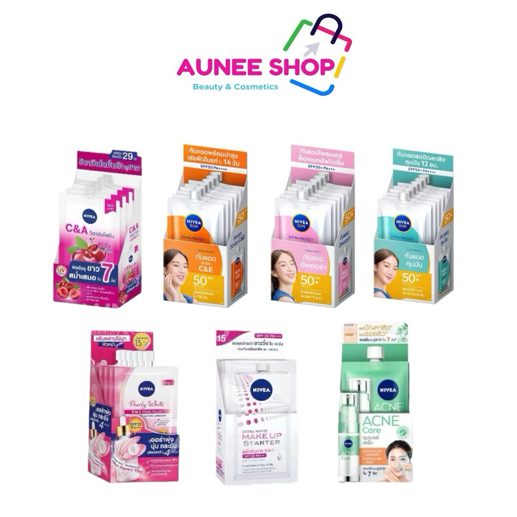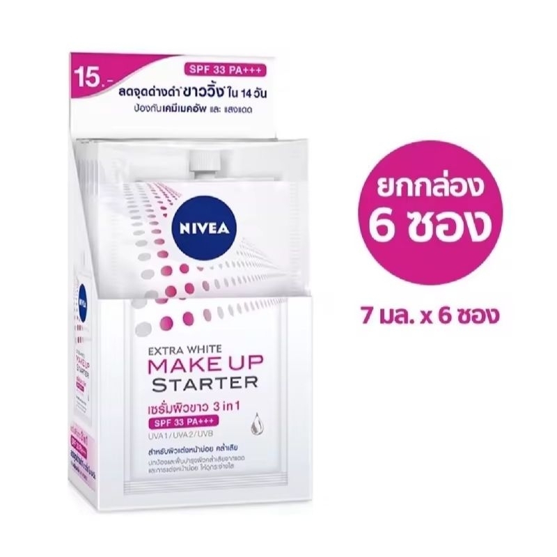 ส่งฟรี (ยกกล่อง 6 ซอง) นีเวีย ซอง ทาหน้าทาตัว กันแดด Nivea Pearl White/ Make up/ Nivea Sun Primer/ C&E/ C&A/ Dewy / Acne