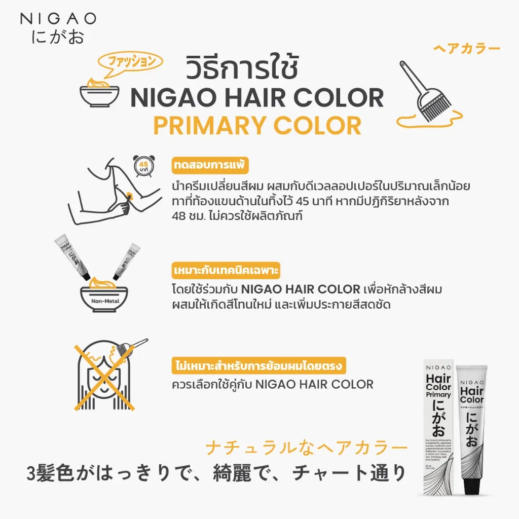 สีย้อมผม แม่สี นิกาโอะ แฮร์ คัลเลอร์ (ไม่แถมไฮโดรเจน) Nigao Hair Color 30 ml.