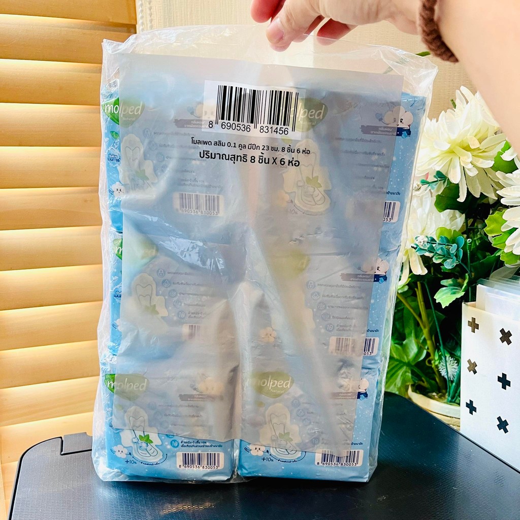 (แพค 6 ห่อ) ผ้าอนามัยสูตรเย็นโมลเพด 0.1 อัลตร้า สลิม mol ped (ขนาด 23 ซม./ มีปีก) ห่อละ 8 ชิ้น x6 ห่อ