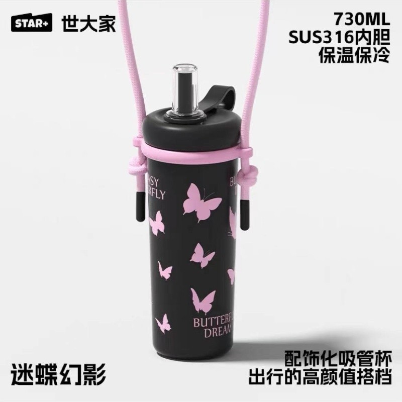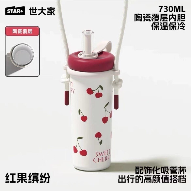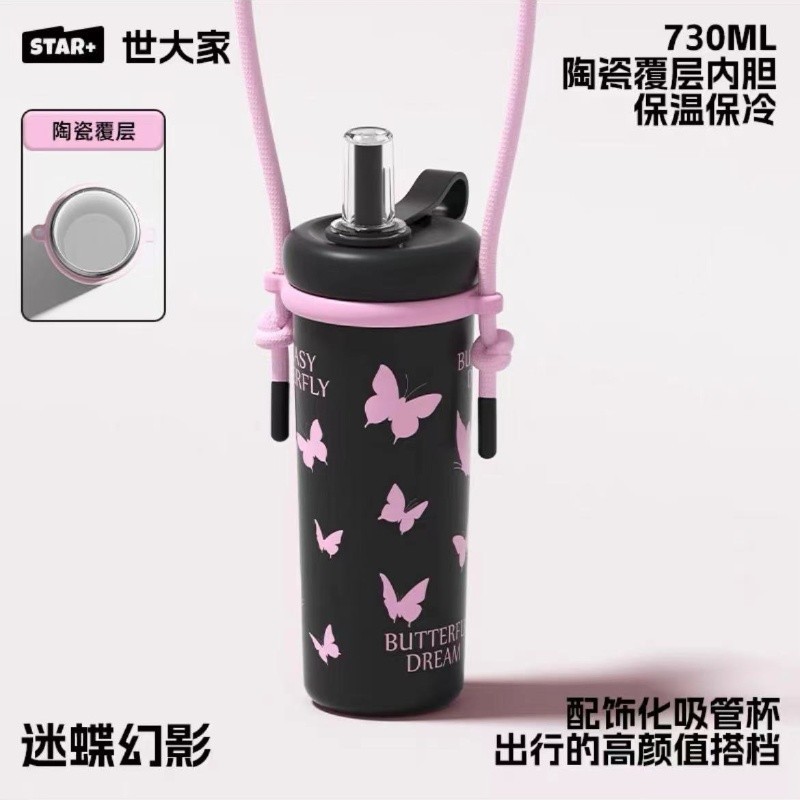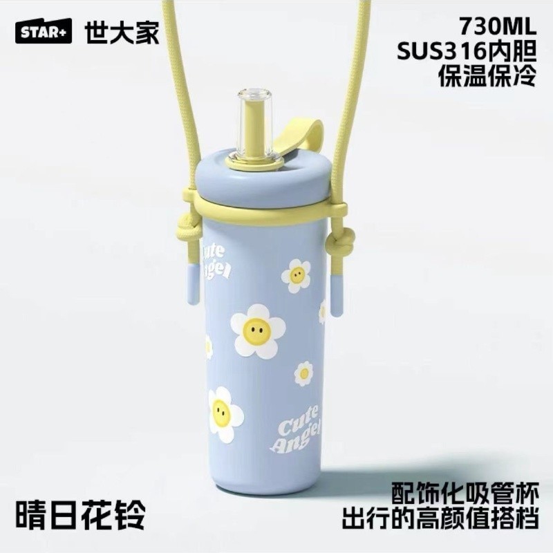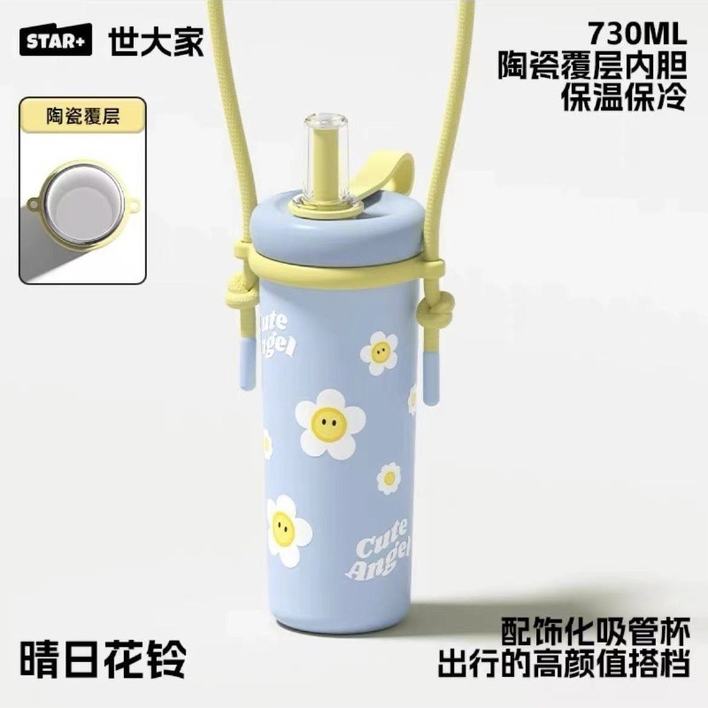 ดาว+ฟางถ้วยแก้วชาแยกน้ําถ้วยกาแฟถ้วยดอกไม้ถ้วยชาแก้วพร้อมที่จับ 730มล
