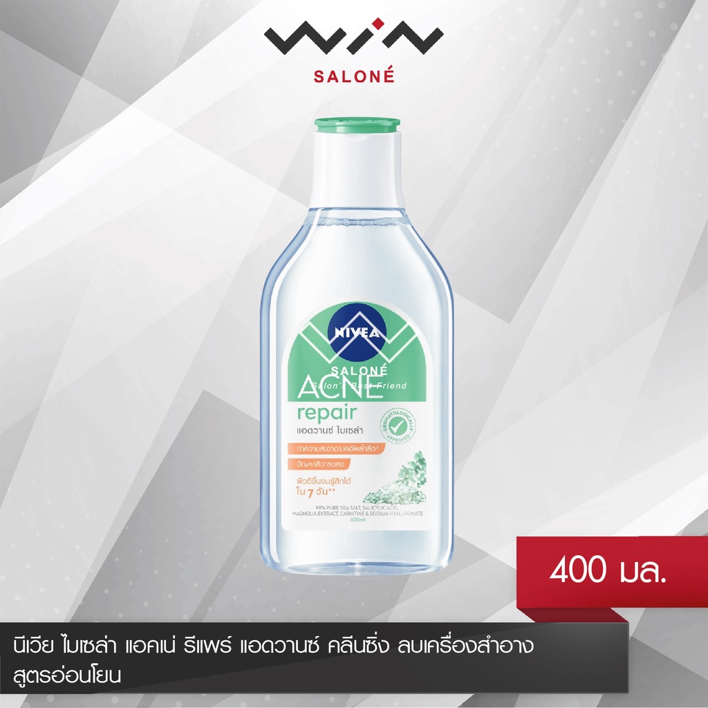 NIVEA นีเวีย ไมเซล่า แอคเน่ รีแพร์ แอดวานซ์ 400 มล. เช็ดเครื่องสำอาง คลีนซิ่ง ลบเครื่องสำอาง สูตรอ่อนโยน จัดการปัญหาสิว