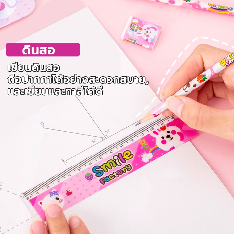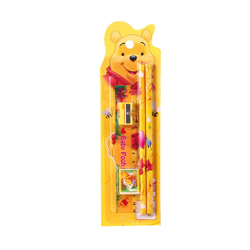 ชุดเครื่องเขียน แพ็ค 5 ชิ้น (ดินสอ ยางลบ ไม้บรรทัด กบเหลา)