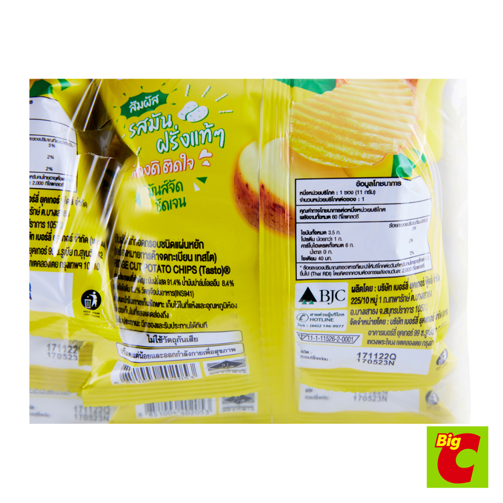 เทสโต มันฝรั่งแท้ทอดกรอบชนิดแผ่นหยัก รสมันฝรั่งแท้ 11 ก. แพ็ค 12