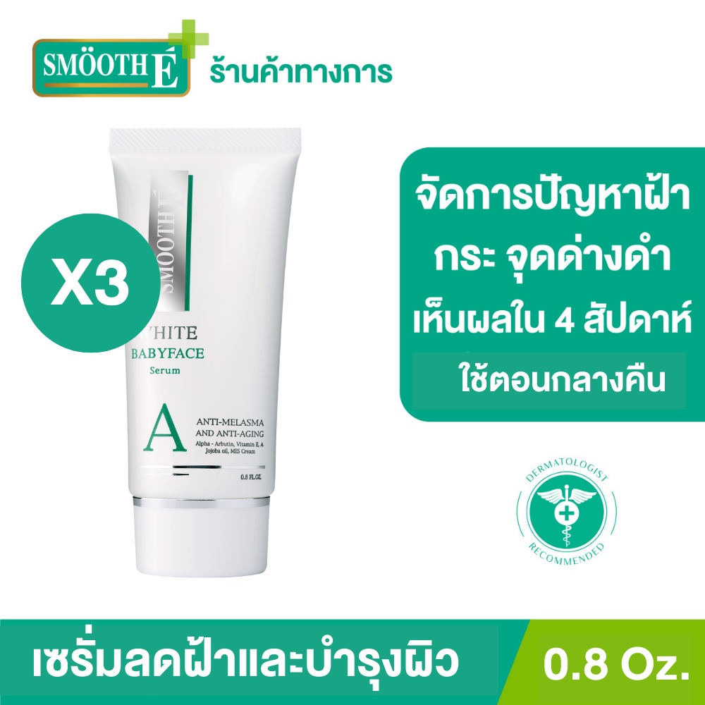 [แพ็ค 3] Smooth E Anti-Melasma White Babyface Serum 0.8 Oz. ลดฝ้า กระ จุดด่างดำ ผิวขาวเนียน เห็นผลใน 4 สัปดาห์