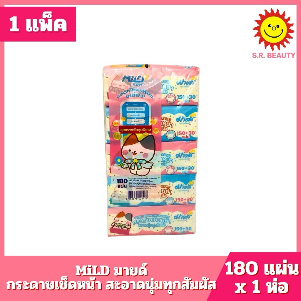[ 1 แพ็ค ] MiLD มายด์ กระดาษเช็ดหน้า สะอาดนุ่มทุกสัมผัส ปริมาณ 180 แผ่น x 1 ห่อ ( 1 แพ็ค )
