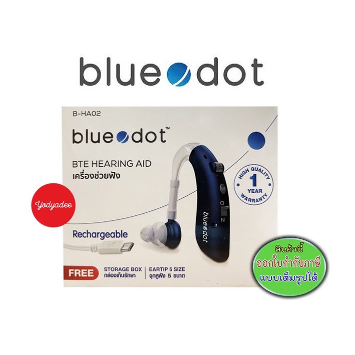 Blue.dot BTE hearing aid เครื่องช่วยฟัง แบบชาร์จไฟได้ B-HA02 87020 รับประกัน 1 ปี