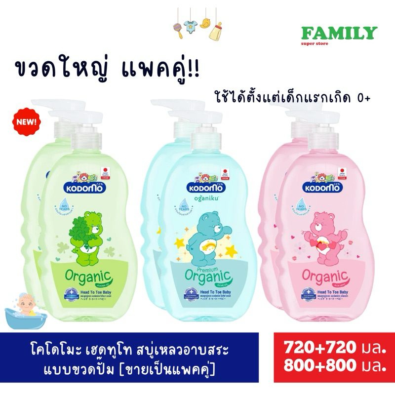 Kodomo โคโดโมะ เบบี้ เฮดทูโท (แพคคู่) 720+720 / 800+800 มล.(ได้2ขวด)