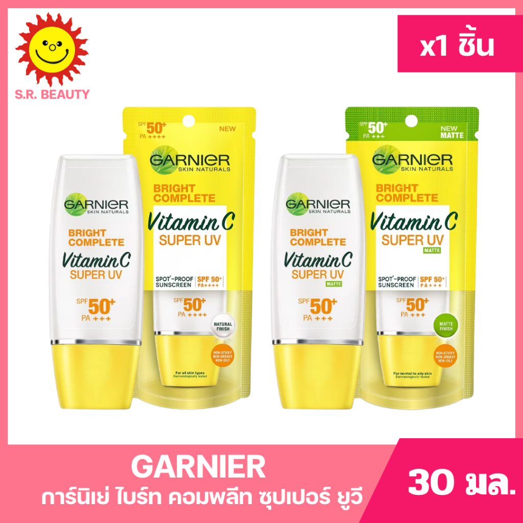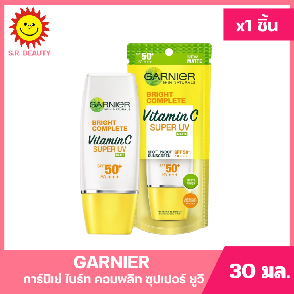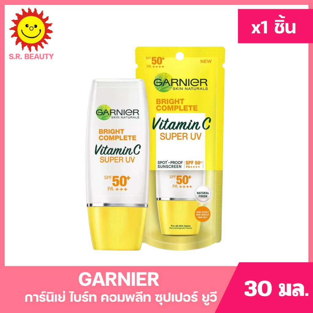 [ 1ชิ้น ] Garnier การ์นิเย่ สกิน แนทเชอรัลส์ ไบรท์ คอมพลีท ซุปเปอร์ ยูวี SPF50+ PA+++ ขนาด 30 มล. (1ชิ้น) มี 2 สูตร