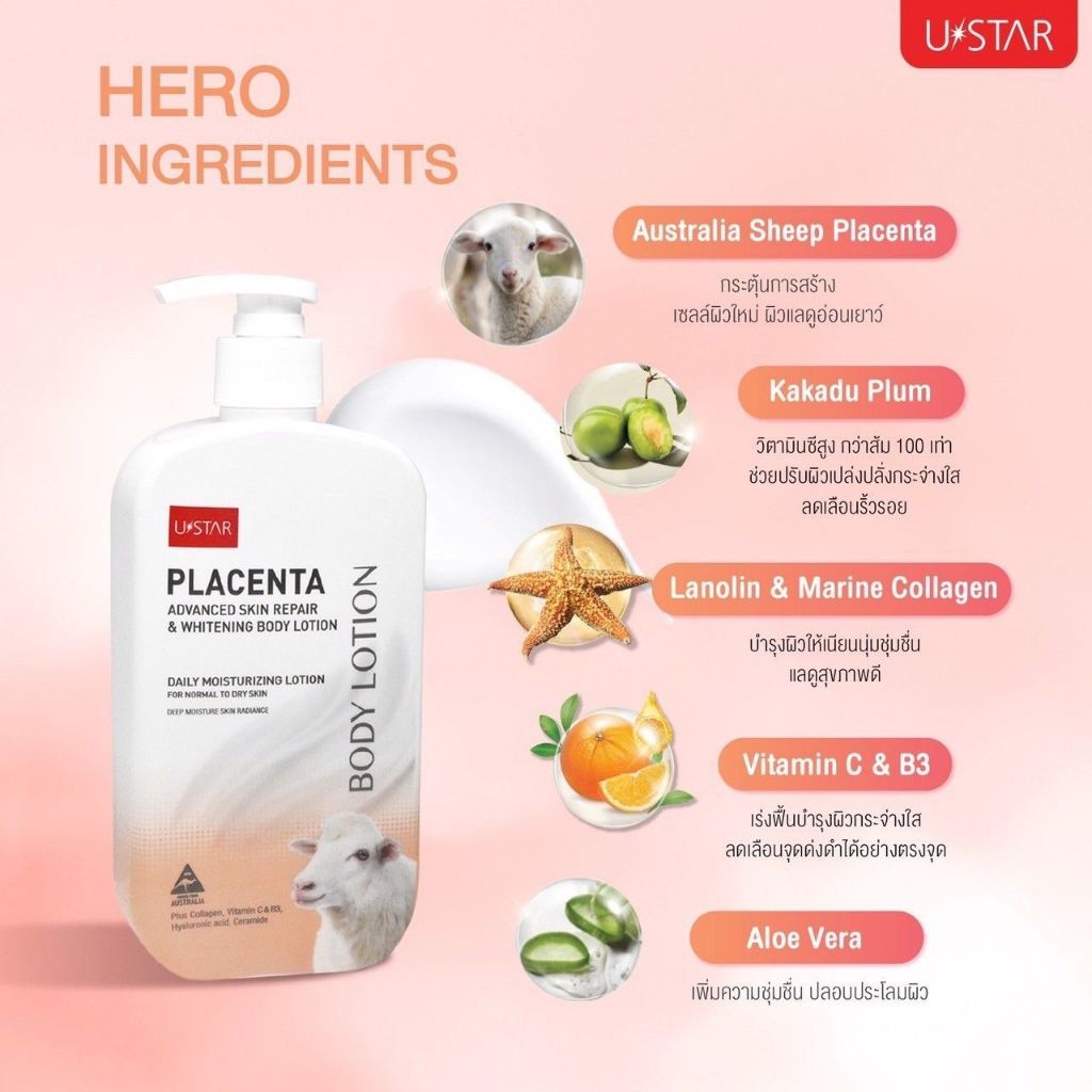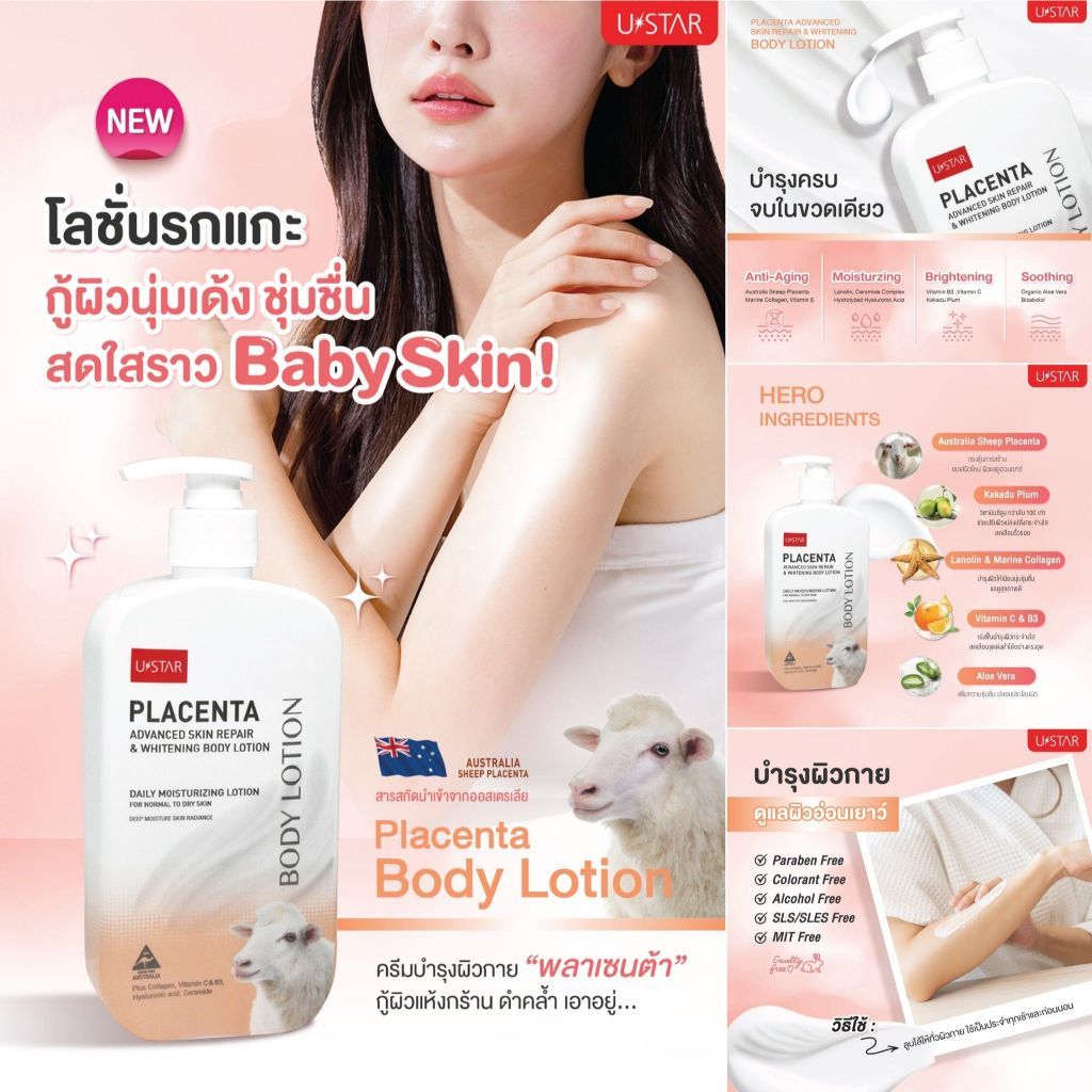 Ustar Placenta Advanced Skin Repair & Whitening Body Lotion 400g ยูสตาร์ พลาเซนต้า แอดวานซ์ สกิน บอดี้ โลชั่น 400กรัม