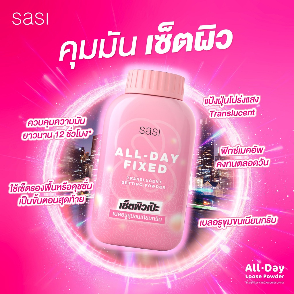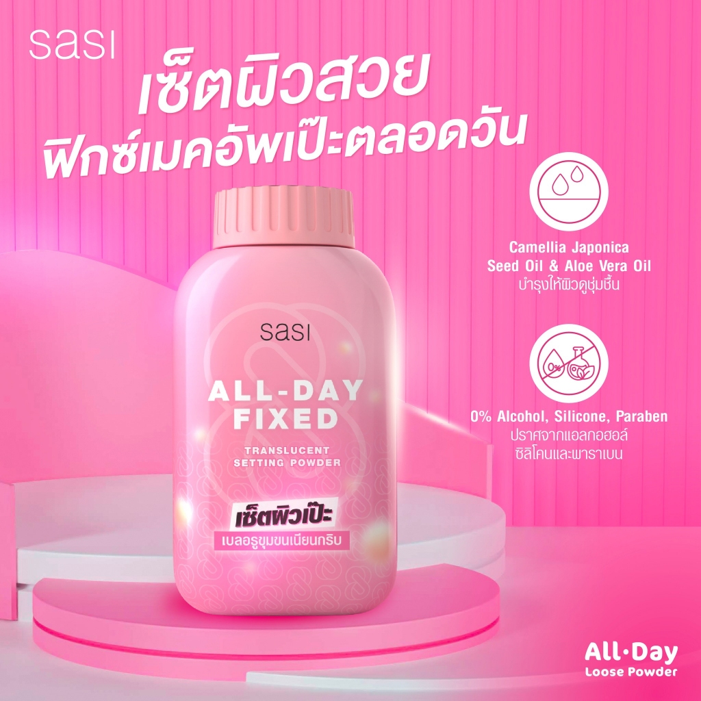 แป้งฝุ่น ศศิ ออล เดย์ ฟิกซ์ พาวเดอร์ Sasi All-Day Fixed Translucent Setting Powder 50g.
