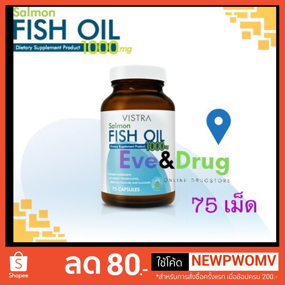 น้ำมันปลา วิสตร้า 1000 มก. 75 เม็ด Vistra Salmon Fish Oil 1000 Mg 75 caps