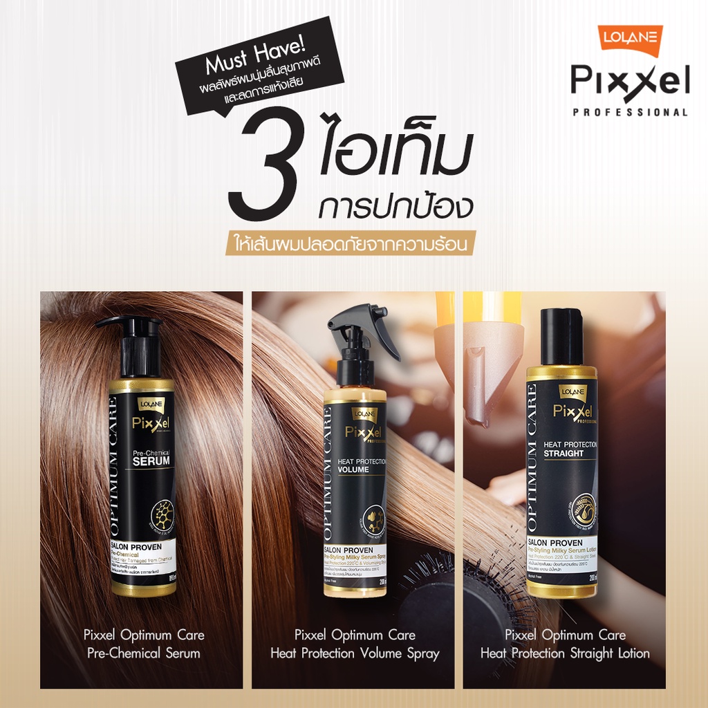 โลแลน โลชั่นน้ำนมบำรุงผม ป้องกันความร้อน ล็อคผมตรง Lolane Pixxel Optimum Care Heat Protection Straight 200ml
