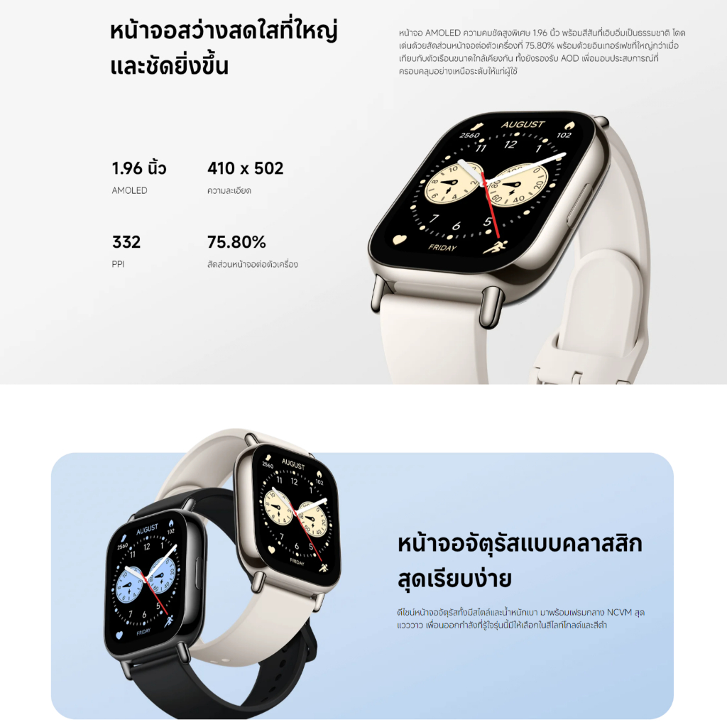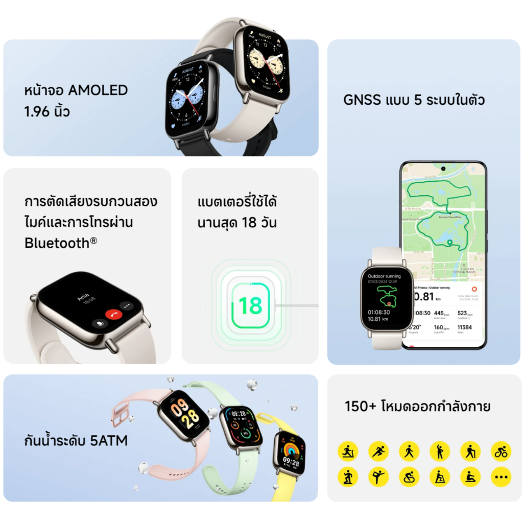 Xiaomi Redmi Watch 5 Lite สมาร์ทวอทช์ I สมาทวอช I พร้อมการโทรผ่านบลูทูธและ I หน้าจอ AMOLED ขนาด 1.96 นิ้ว